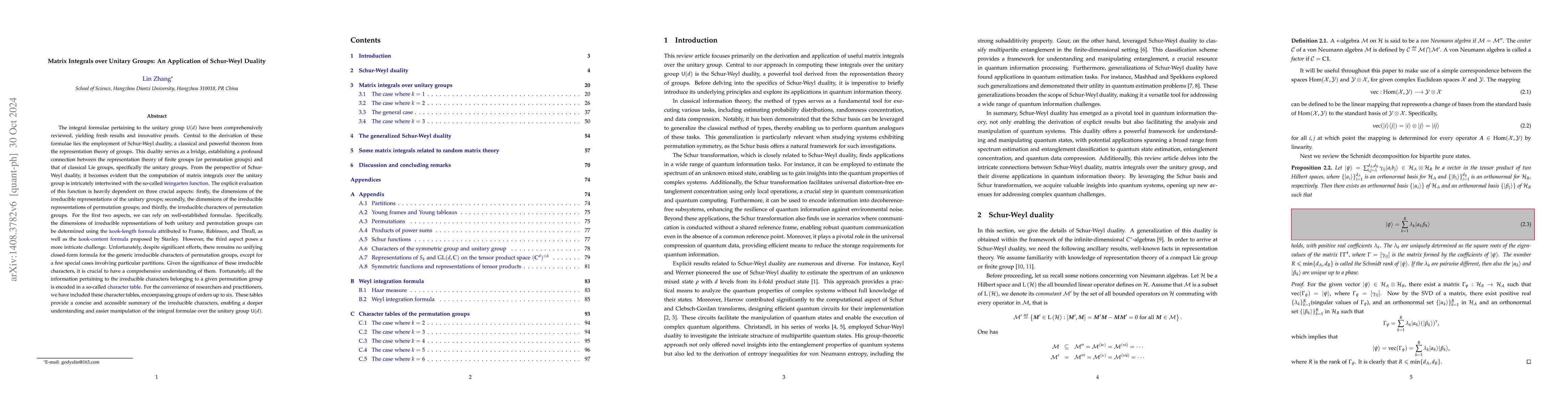 Summary: This paper reviews integral formulae over the unitary group $\unitary{d}$, presenting new results and proofs. It emphasizes the importance of normalization and bi-invariance of the uniform Haar measure, grounded in Schur-Weyl duality from representation theory.