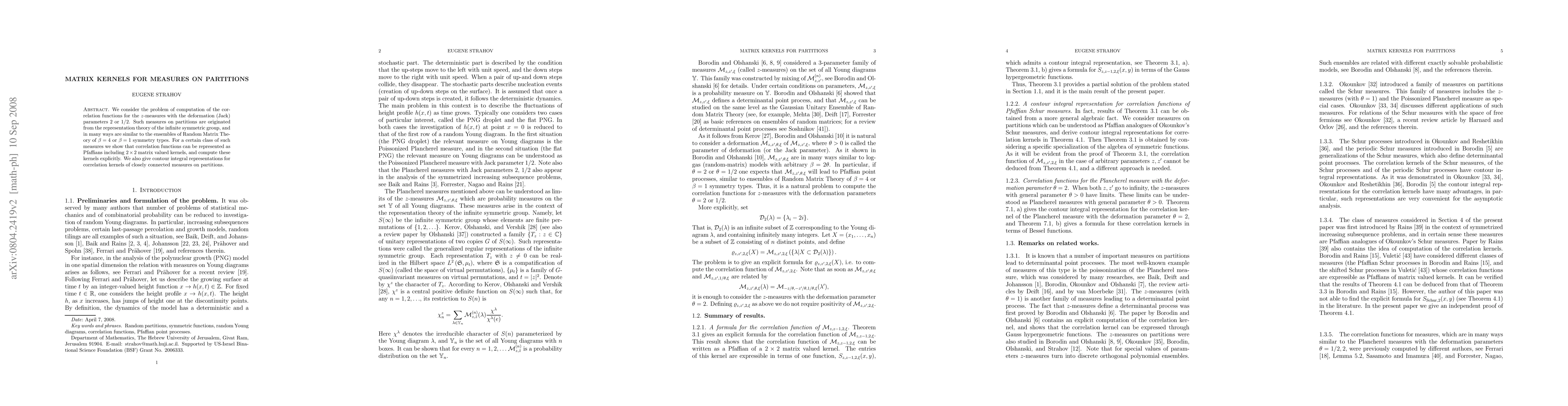 Researchers have developed matrix kernels that can compute correlation functions for measures on partitions using Pfaffians, providing a new tool for understanding certain classes of partition ensembles.