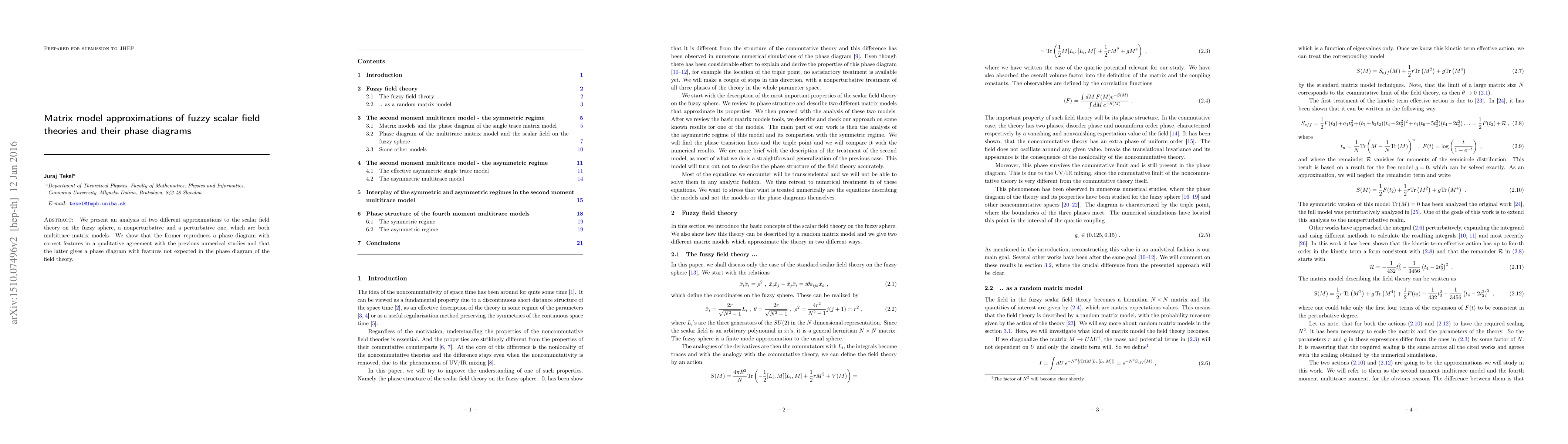 This paper analyzes two matrix model approximations for scalar field theory on the fuzzy sphere, finding that the nonperturbative model qualitatively agrees with previous numerical studies, while the perturbative model yields unexpected phase diagram features.