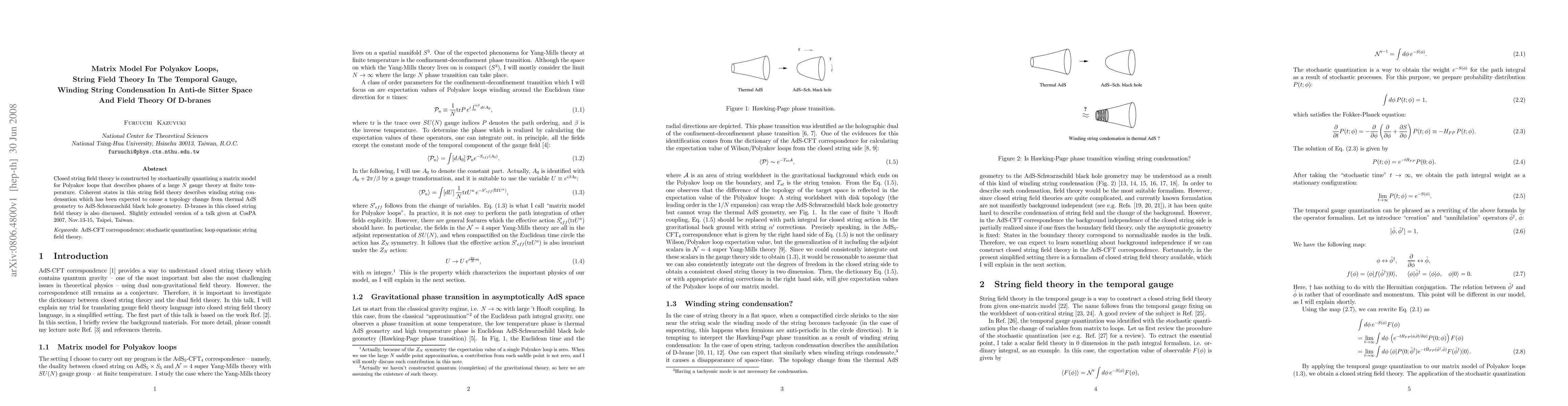 This paper constructs a closed string field theory by quantizing a matrix model for Polyakov loops, which describes phases of large N gauge theory at finite temperature. It explores winding string condensation leading to topology change in AdS space and discusses D-branes within this framework.