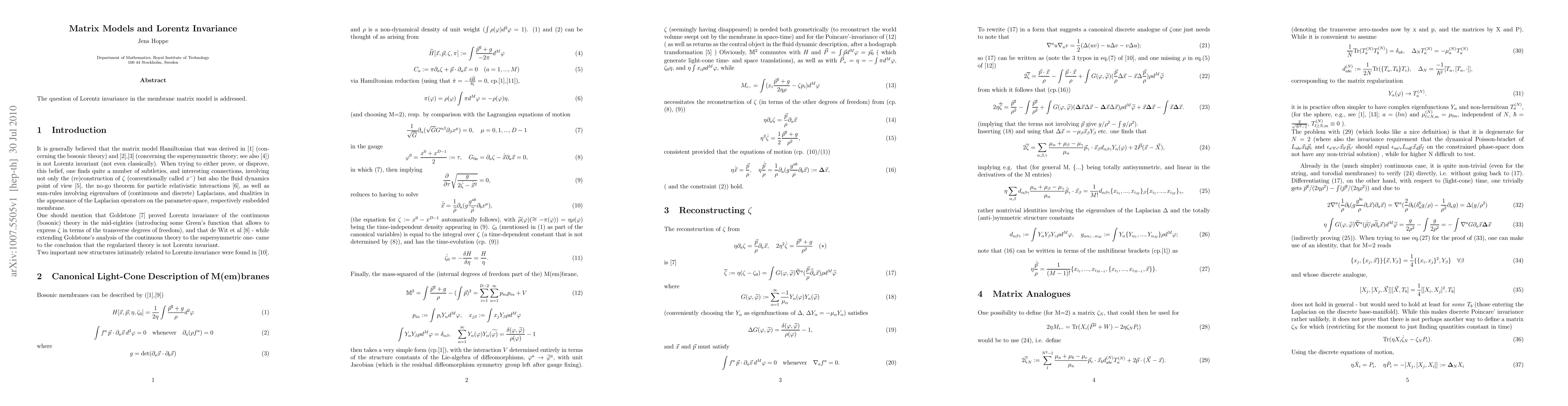 The question of Lorentz invariance in the membrane matrix model is addressed
