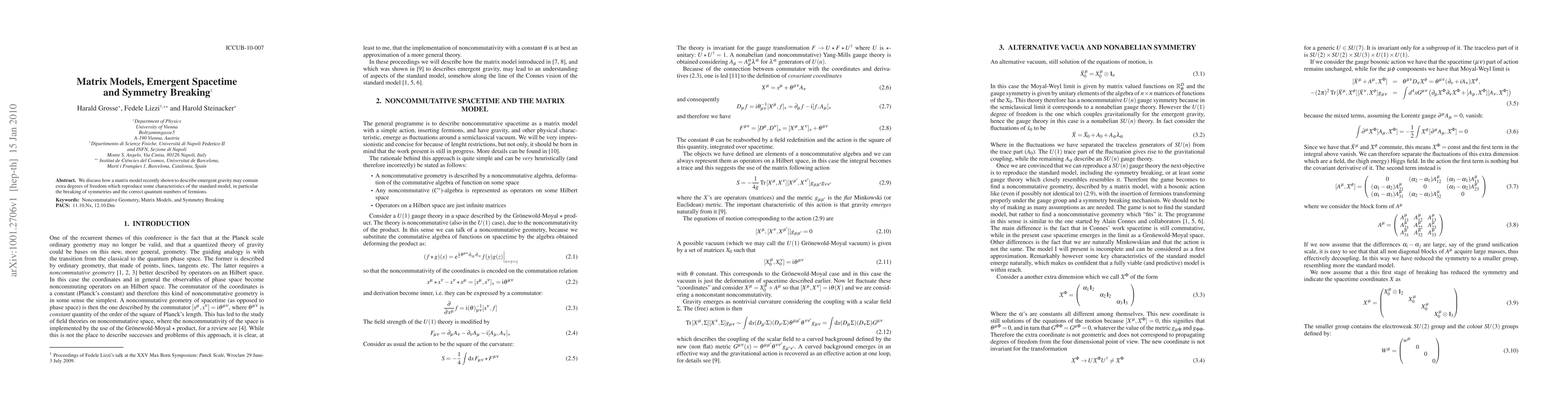 We discuss how a matrix model recently shown to describe emergent gravity may contain extra degrees of freedom which reproduce some characteristics of the standard model, in particular the breaking of symmetries and the correct quantum numbers of fermions.