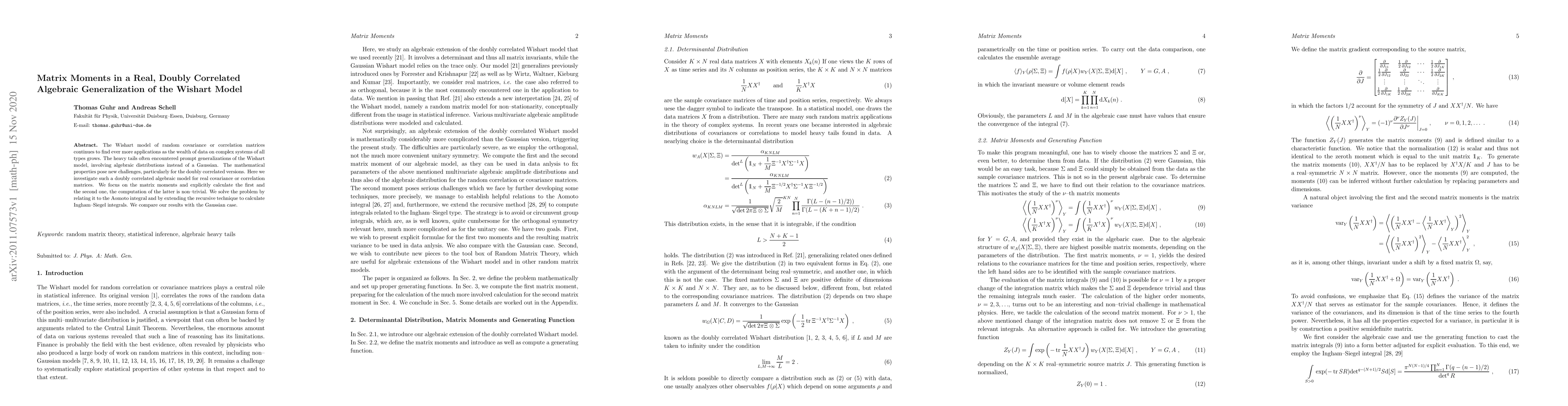The Wishart model of random covariance or correlation matrices continues to find ever more applications as the wealth of data on complex systems of all types grows. The heavy tails often encountered prompt generalizations of the Wishart model, involving algebraic distributions instead of a Gaussian. The mathematical properties pose new challenges, particularly for the doubly correlated versions. Here we investigate such a doubly correlated algebraic model for real covariance or correlation matrices. We focus on the matrix moments and explicitly calculate the first and the second one, the computation of the latter is non-trivial. We solve the problem by relating it to the Aomoto integral and by extending the recursive technique to calculate Ingham-Siegel integrals. We compare our results with the Gaussian case.