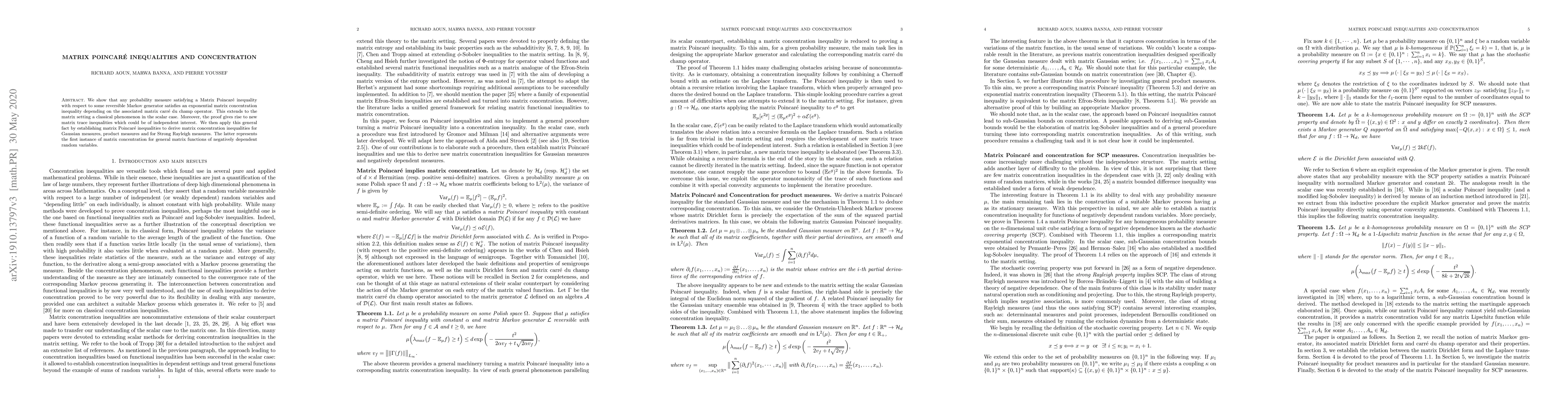 The paper introduces matrix Poincaré inequalities and demonstrates their implications for matrix concentration, leading to new trace inequalities and concentration results for various probability measures.