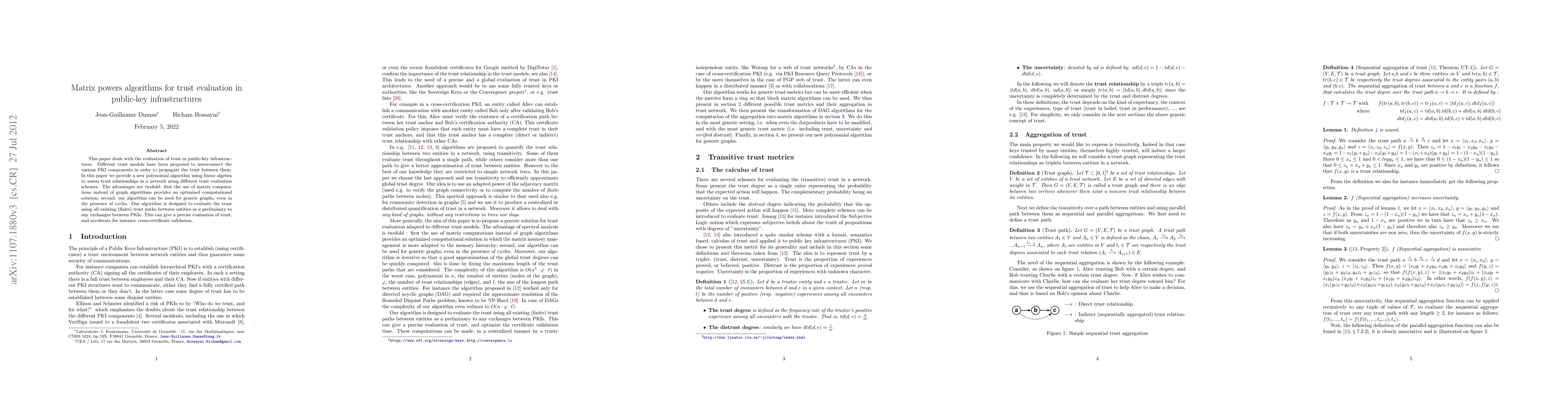 This paper deals with the evaluation of trust in public-key infrastructures. Different trust models have been proposed to interconnect the various PKI components in order to propagate the trust between them. In this paper we provide a new polynomial algorithm using linear algebra to assess trust relationships in a network using different trust evaluation schemes. The advantages are twofold: first the use of matrix computations instead of graph algorithms provides an optimized computational solution; second, our algorithm can be used for generic graphs, even in the presence of cycles. Our algorithm is designed to evaluate the trust using all existing (finite) trust paths between entities as a preliminary to any exchanges between PKIs. This can give a precise evaluation of trust, and accelerate for instance cross-certificate validation.