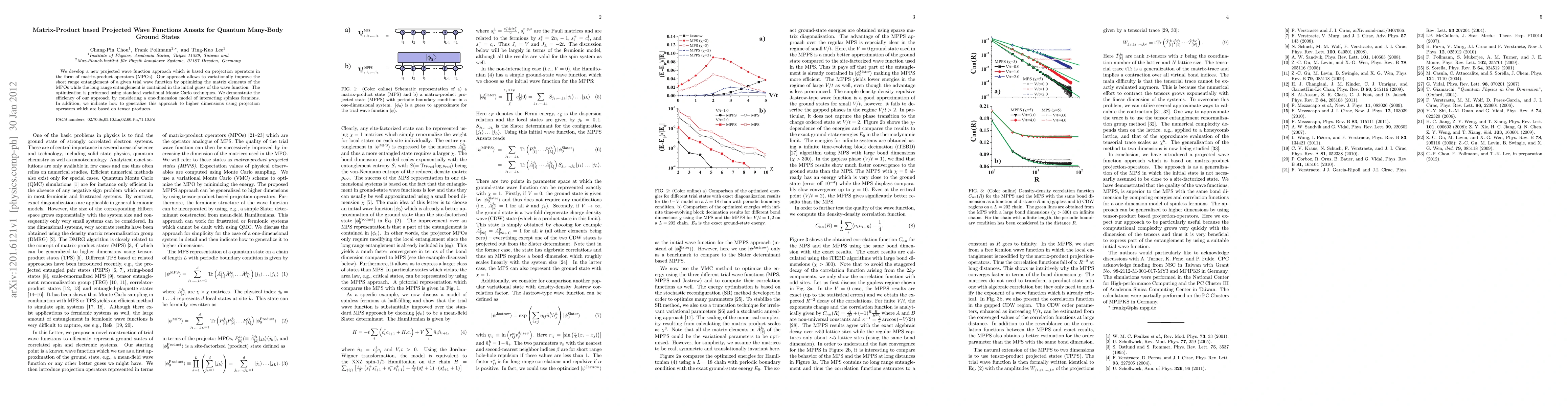 We develop a new projected wave function approach which is based on projection operators in the form of matrix-product operators (MPOs). Our approach allows to variationally improve the short range entanglement of a given trial wave function by optimizing the matrix elements of the MPOs while the long range entanglement is contained in the initial guess of the wave function. The optimization is performed using standard variational Monte Carlo techniques. We demonstrate the efficiency of our approach by considering a one-dimension model of interacting spinless fermions. In addition, we indicate how to generalize this approach to higher dimensions using projection operators which are based on tensor products.