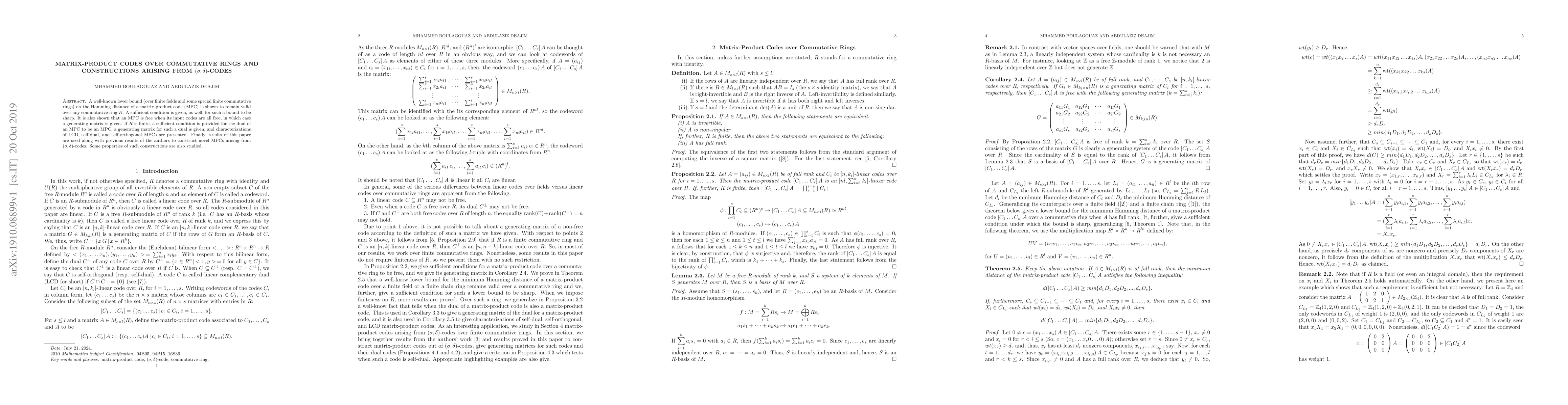 A well-known lower bound (over finite fields and some special finite commutative rings) on the Hamming distance of a matrix-product code (MPC) is shown to remain valid over any commutative ring $R$. A sufficient condition is given, as well, for such a bound to be sharp. It is also shown that an MPC is free when its input codes are all free, in which case a generating matrix is given. If $R$ is finite, a sufficient condition is provided for the dual of an MPC to be an MPC, a generating matrix for such a dual is given, and characterizations of LCD, self-dual, and self-orthogonal MPCs are presented. Finally, results of this paper are used along with previous results of the authors to construct novel MPCs arising from $(\sigma, \delta)$-codes. Some properties of such constructions are also studied.