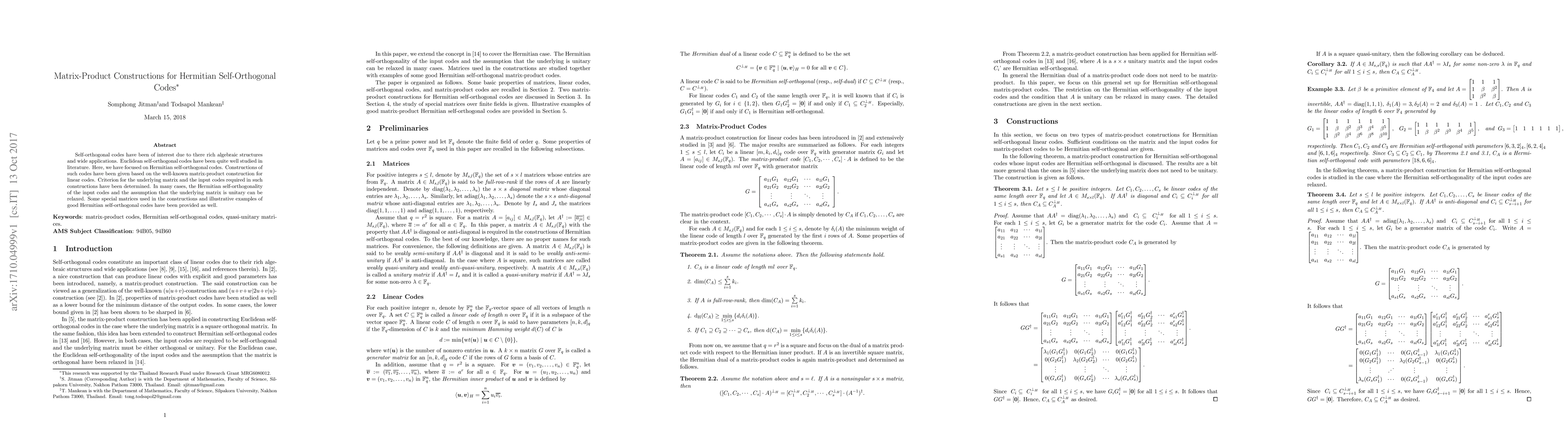 Researchers developed new methods for creating Hermitian self-orthogonal codes using matrix-product constructions, which can relax certain assumptions about the underlying code and matrix.