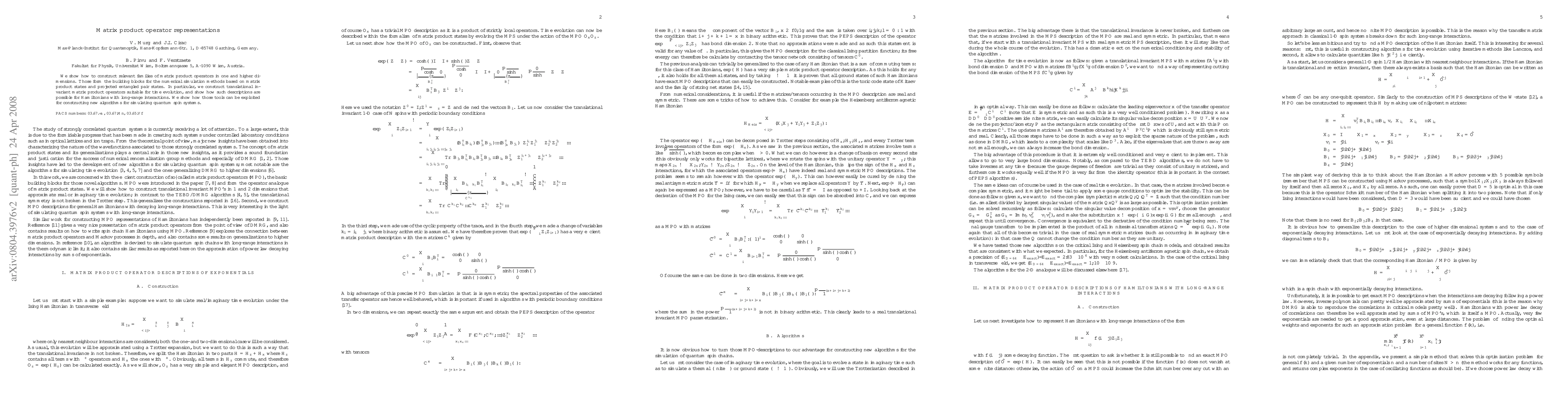 This paper presents methods for constructing matrix product operators in various dimensions, serving as foundational elements for numerical simulations using matrix product states and projected entangled pair states. It also introduces translational invariant operators for time evolution, applicable to Hamiltonians with long-range interactions, and demonstrates their utility in developing new algorithms for quantum spin system simulations.