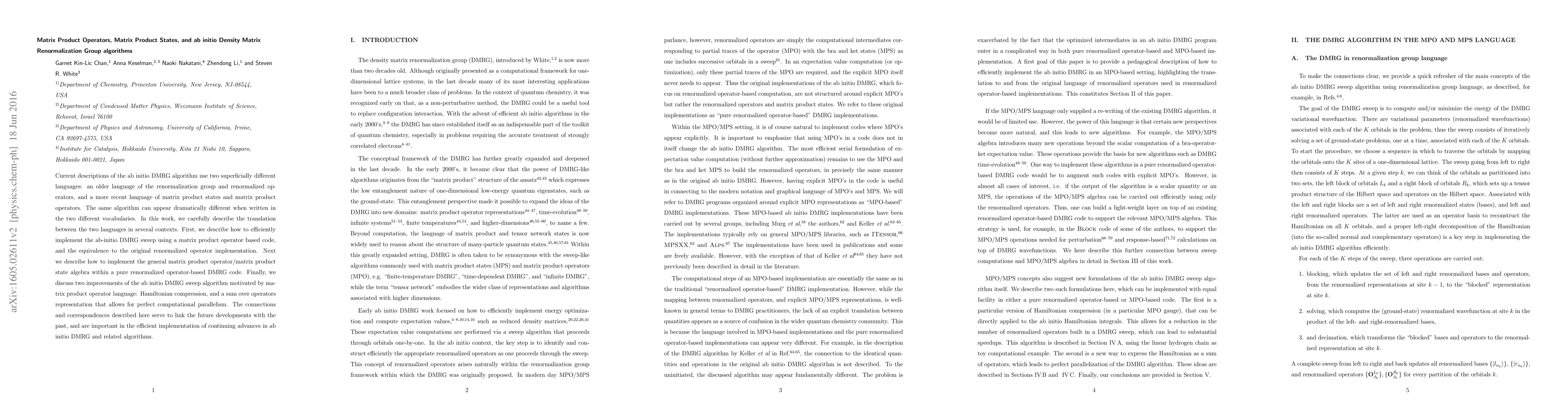 This paper translates the ab initio DMRG algorithm between its older renormalization group language and the newer matrix product state/operator language, demonstrating their equivalence and efficiency. It introduces enhancements like Hamiltonian compression and sum over operators for better computational parallelism.
