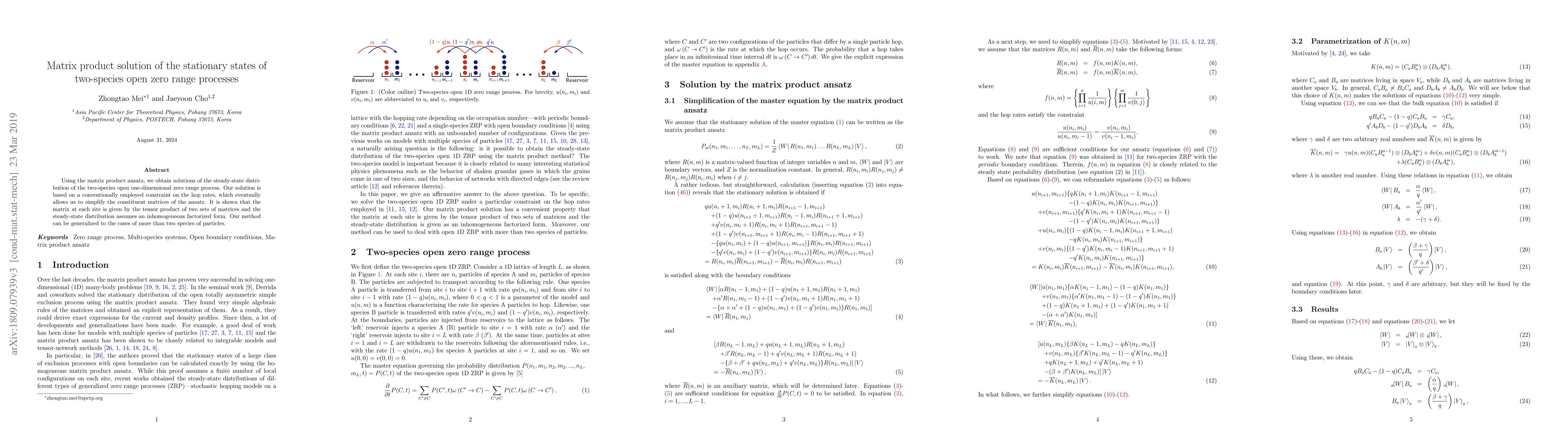Using the matrix product ansatz, we obtain solutions of the steady-state distribution of the two-species open one-dimensional zero range process. Our solution is based on a conventionally employed constraint on the hop rates, which eventually allows us to simplify the constituent matrices of the ansatz. It is shown that the matrix at each site is given by the tensor product of two sets of matrices and the steady-state distribution assumes an inhomogeneous factorized form. Our method can be generalized to the cases of more than two species of particles.