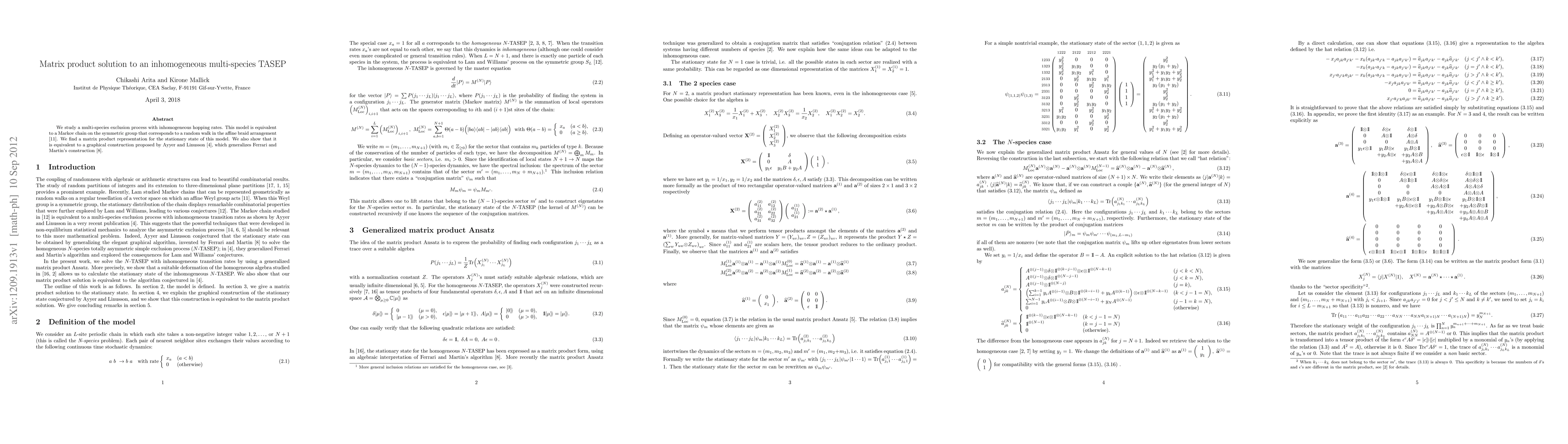 We study a multi-species exclusion process with inhomogeneous hopping rates. This model is equivalent to a Markov chain on the symmetric group that corresponds to a random walk in the affine braid arrangement. We find a matrix product representation for the stationary state of this model. We also show that it is equivalent to a graphical construction proposed by Ayyer and Linusson, which generalizes Ferrari and Martin's construction.