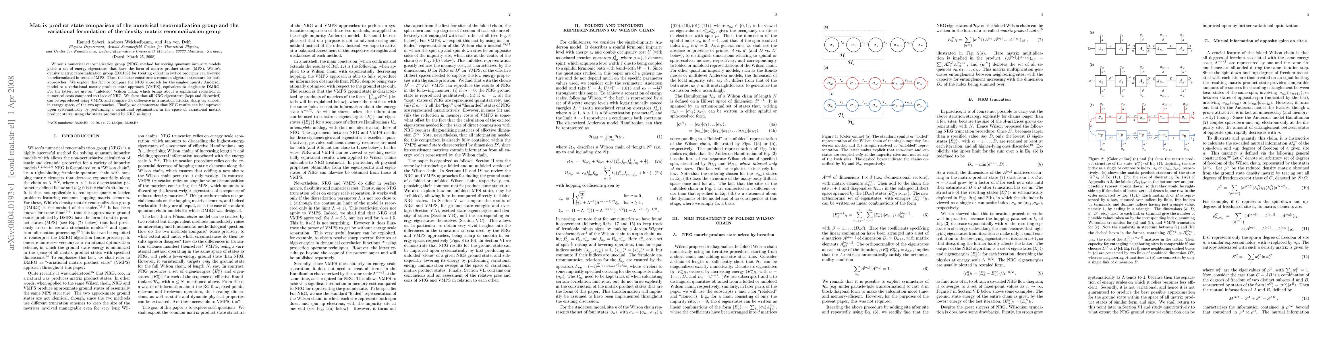 This paper compares the numerical renormalization group (NRG) method and the variational formulation of the density matrix renormalization group (DMRG) through their matrix product state (MPS) representations. It shows that both methods can be recast in terms of MPS, allowing for a direct comparison of NRG's eigenstates with a variational matrix product state approach (VMPS), demonstrating improved results via variational optimization.