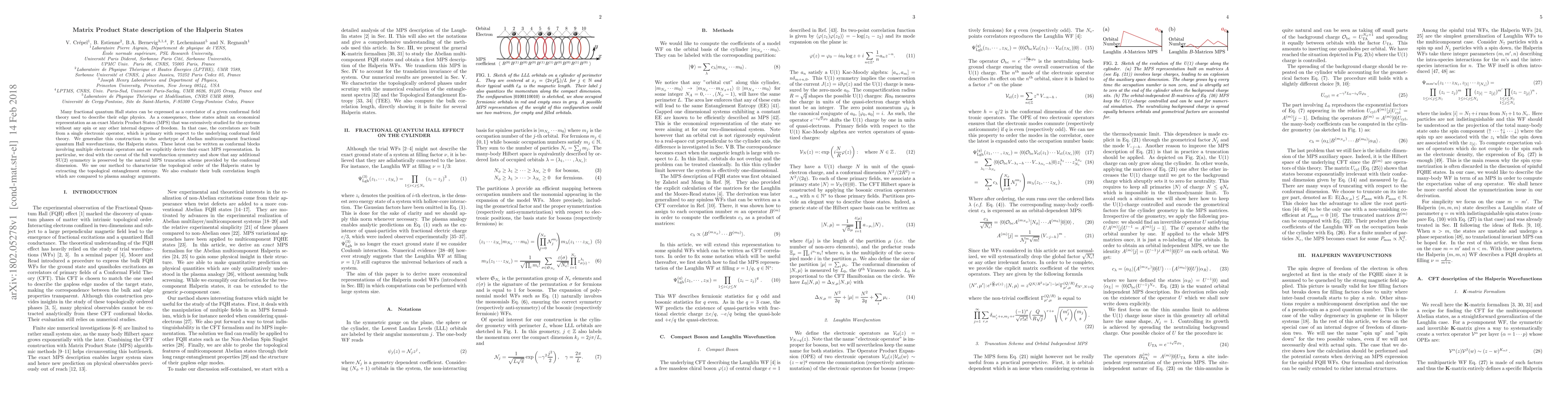 Many fractional quantum Hall states can be expressed as a correlator of a given conformal field theory used to describe their edge physics. As a consequence, these states admit an economical representation as an exact Matrix Product States (MPS) that was extensively studied for the systems without any spin or any other internal degrees of freedom. In that case, the correlators are built from a single electronic operator, which is primary with respect to the underlying conformal field theory. We generalize this construction to the archetype of Abelian multicomponent fractional quantum Hall wavefunctions, the Halperin states. These latest can be written as conformal blocks involving multiple electronic operators and we explicitly derive their exact MPS representation. In particular, we deal with the caveat of the full wavefunction symmetry and show that any additional SU(2) symmetry is preserved by the natural MPS truncation scheme provided by the conformal dimension. We use our method to characterize the topological order of the Halperin states by extracting the topological entanglement entropy. We also evaluate their bulk correlation length which are compared to plasma analogy arguments.