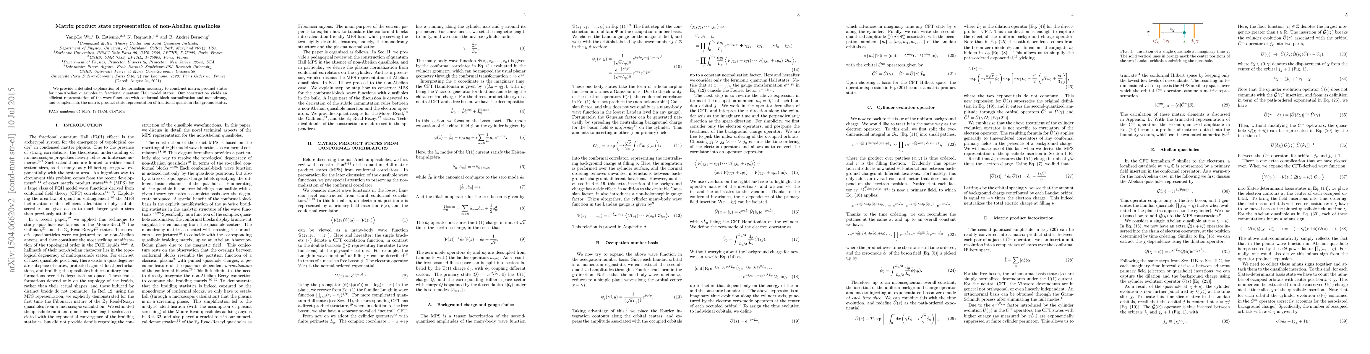 This paper develops a formalism for constructing matrix product states to represent non-Abelian quasiholes in fractional quantum Hall states, achieving efficient wave function representation with conformal-block normalization and monodromy. This complements existing matrix product state representations for ground states.