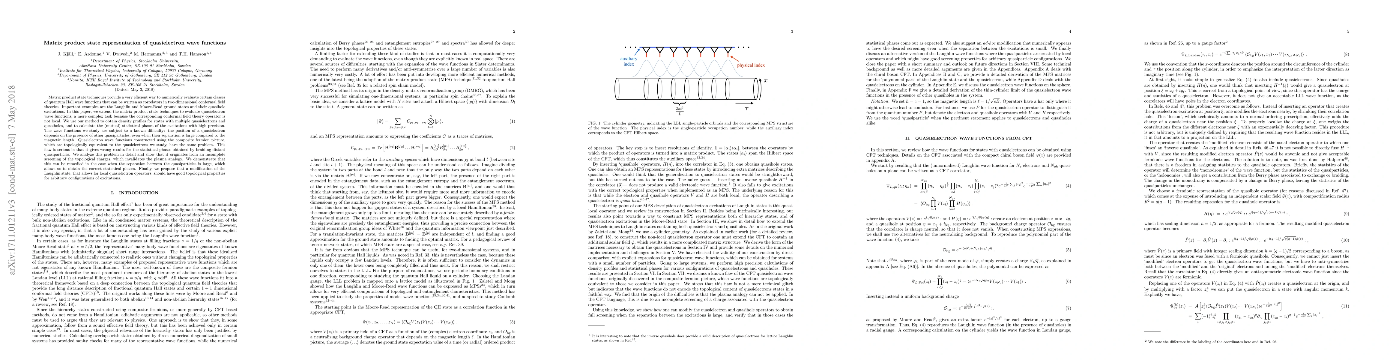 This paper extends matrix product state techniques to evaluate quasielectron wave functions in quantum Hall systems, addressing the challenge of non-locality in the corresponding conformal field theory. The authors analyze the issue of incorrect statistical phases due to incomplete screening of topological charges and propose a modified Laughlin state with local quasielectron operators for better topological properties.
