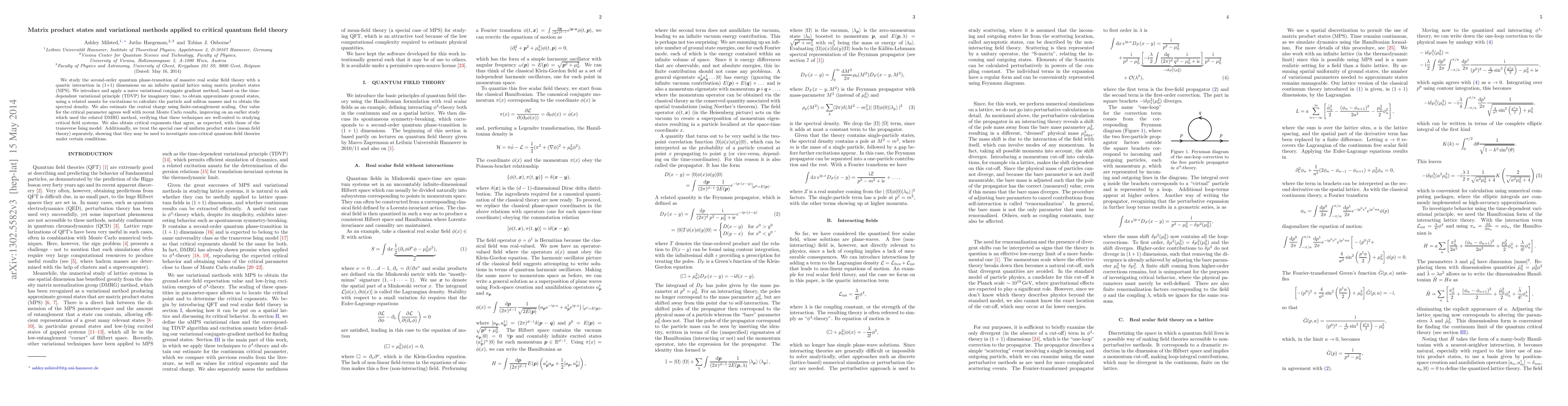 This paper uses matrix product states and a variational conjugate gradient method to study the second-order quantum phase transition in (1+1) dimensional $\phi^4$ field theory, obtaining accurate critical parameters and critical exponents, and demonstrating the effectiveness of these techniques for critical field systems. It also explores uniform product states for non-critical quantum field theories.