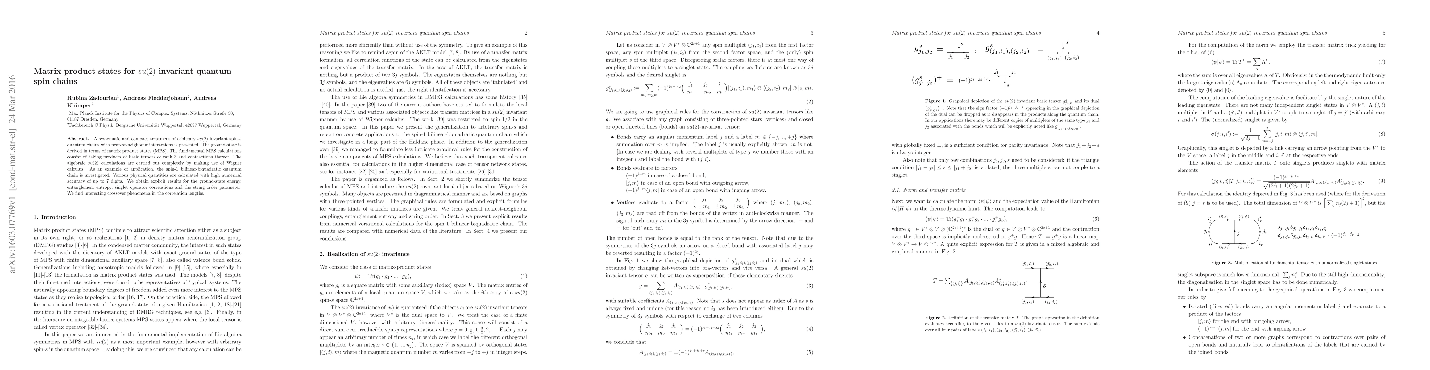 A systematic and compact treatment of arbitrary $su(2)$ invariant spin-$s$ quantum chains with nearest-neighbour interactions is presented. The ground-state is derived in terms of matrix product states (MPS). The fundamental MPS calculations consist of taking products of basic tensors of rank 3 and contractions thereof. The algebraic $su(2)$ calculations are carried out completely by making use of Wigner calculus. As an example of application, the spin-1 bilinear-biquadratic quantum chain is investigated. Various physical quantities are calculated with high numerical accuracy of up to 7 digits. We obtain explicit results for the ground-state energy, entanglement entropy, singlet operator correlations and the string order parameter. We find interesting crossover phenomena in the correlation lengths.