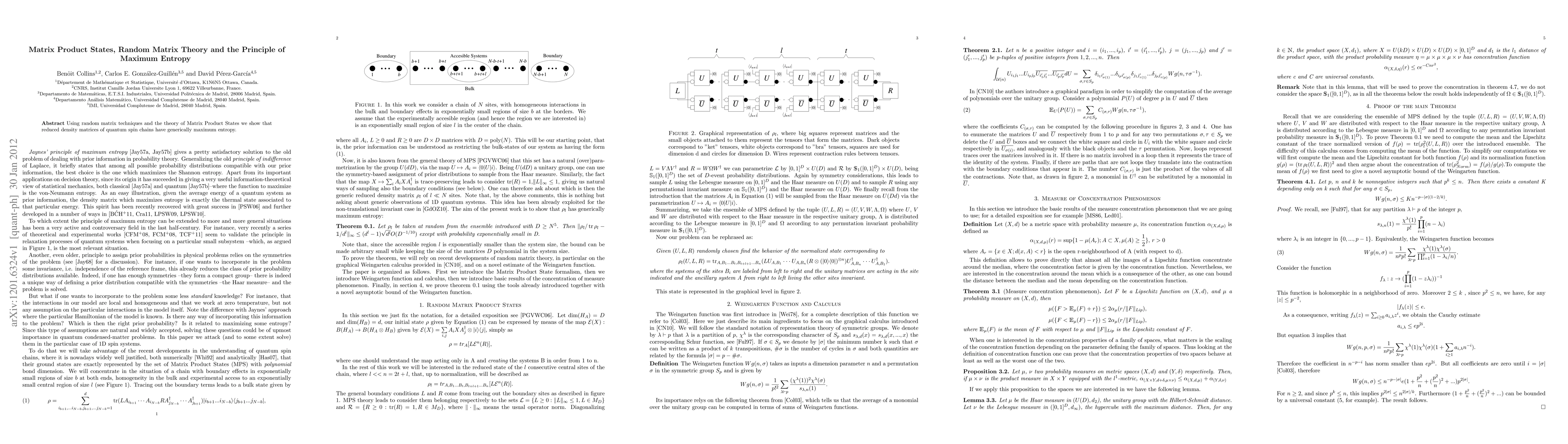 Summary: The paper employs random matrix techniques and Matrix Product States to demonstrate that reduced density matrices in quantum spin chains typically exhibit maximum entropy, aligning with the principle of maximum entropy.