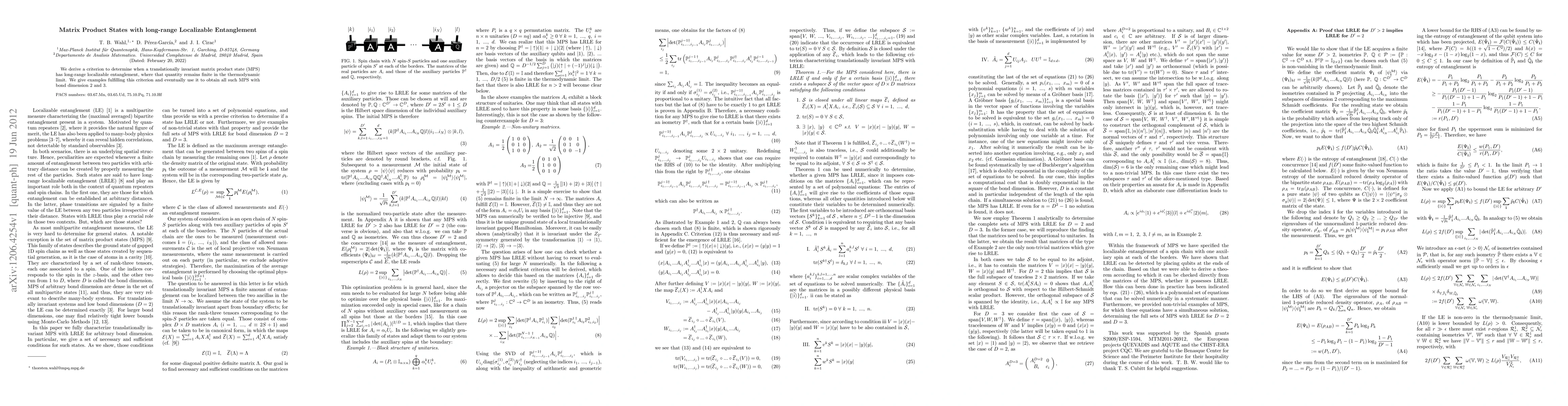 Researchers developed a criterion to identify matrix product states with long-range localizable entanglement, which remains finite in the thermodynamic limit, providing new insights into quantum systems.