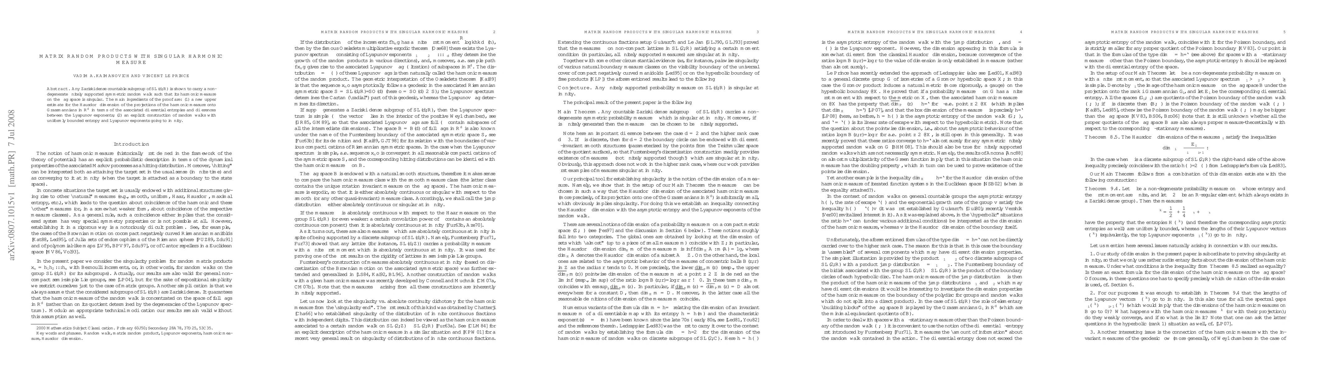Any Zariski dense countable subgroup of $SL(d,R)$ is shown to carry a non-degenerate finitely supported symmetric random walk such that its harmonic measure on the flag space is singular. The main ingredients of the proof are: (1) a new upper estimate for the Hausdorff dimension of the projections of the harmonic measure onto Grassmannians in $R^d$ in terms of the associated differential entropies and differences between the Lyapunov exponents; (2) an explicit construction of random walks with uniformly bounded entropy and Lyapunov exponents going to infinity.