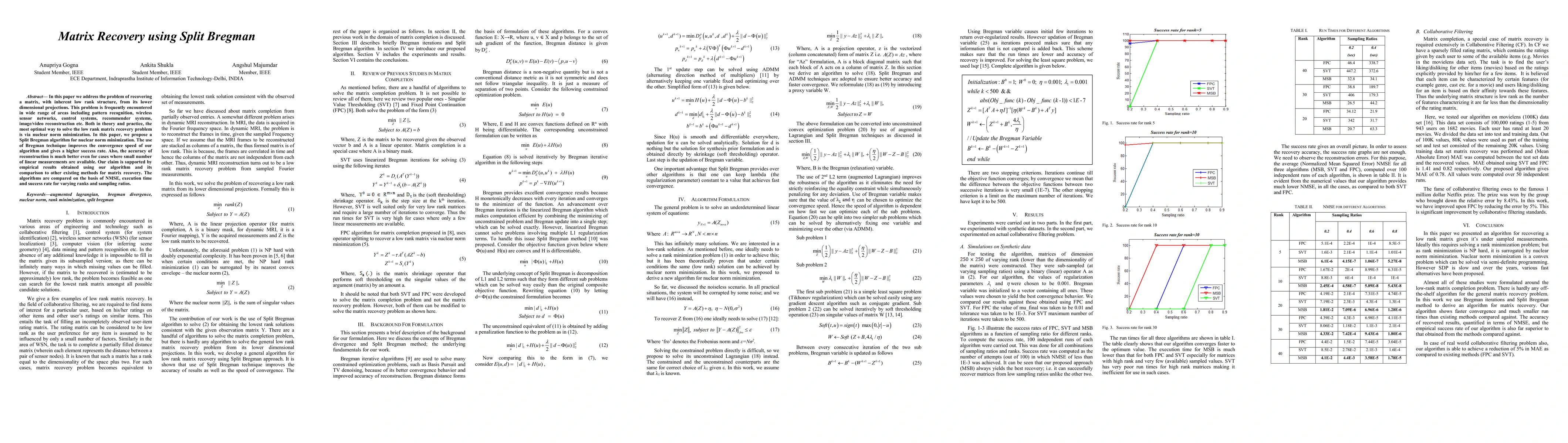 Researchers propose a new algorithm, Split Bregman, for recovering low-rank matrices from limited linear measurements, achieving higher accuracy and success rates than existing methods.