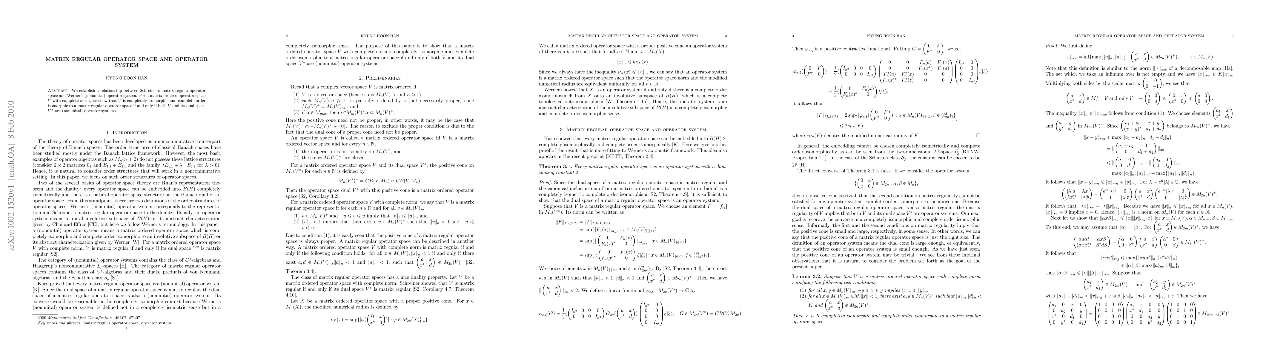 We establish a relationship between Schreiner's matrix regular operator space and Werner's (nonunital) operator system. For a matrix ordered operator space $V$ with complete norm, we show that $V$ is completely isomorphic and complete order isomorphic to a matrix regular operator space if and only if both $V$ and its dual space $V^*$ are (nonunital) operator systems.