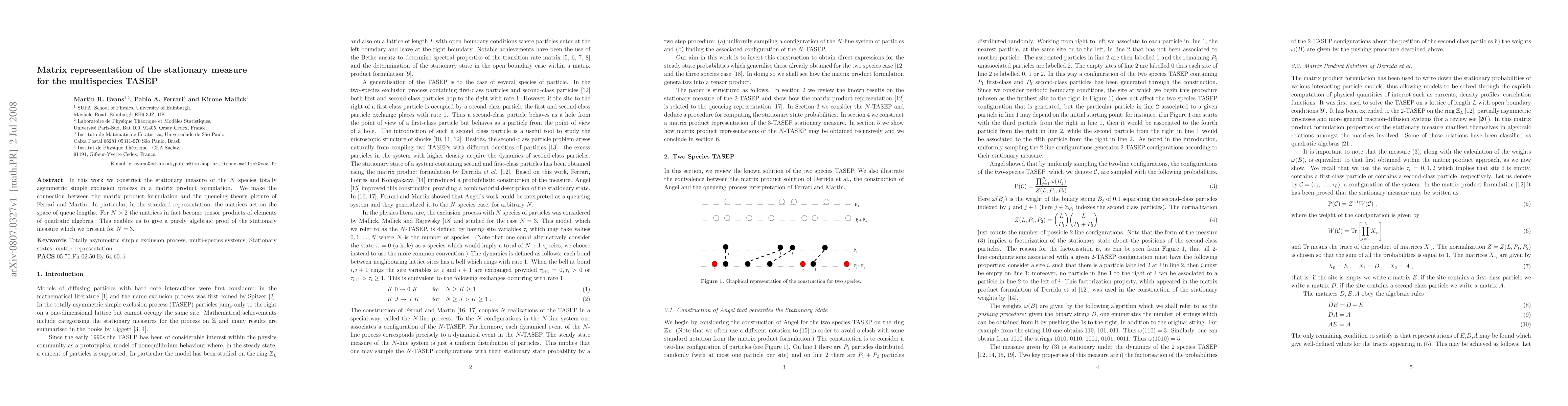In this work we construct the stationary measure of the N species totally asymmetric simple exclusion process in a matrix product formulation. We make the connection between the matrix product formulation and the queueing theory picture of Ferrari and Martin. In particular, in the standard representation, the matrices act on the space of queue lengths. For N >2 the matrices in fact become tensor products of elements of quadratic algebras. This enables us to give a purely algebraic proof of the stationary measure which we present for N =3.