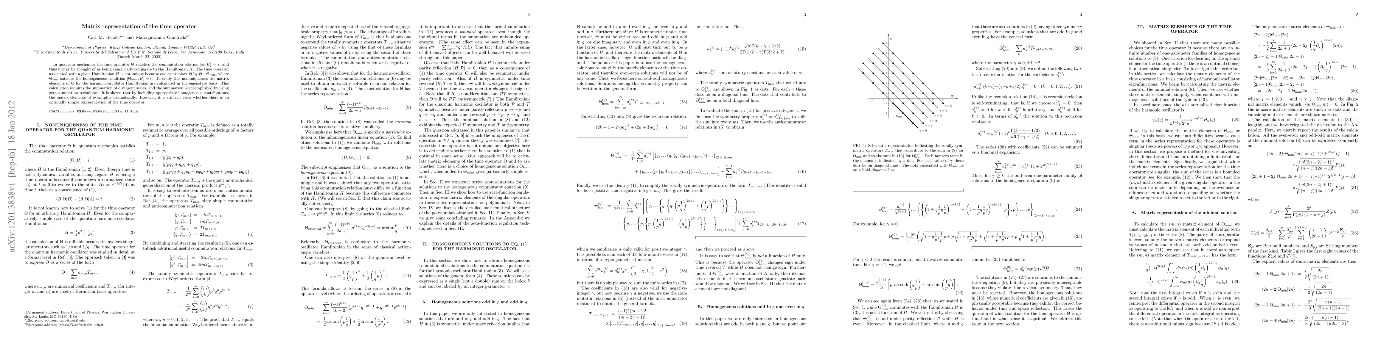 This paper explores the non-unique time operator $Theta$ in quantum mechanics, which commutes with the Hamiltonian $H$ only up to an additive homogeneous term. By calculating matrix elements of $Theta$ for a harmonic oscillator Hamiltonian in the eigenstate basis, the authors demonstrate that including homogeneous contributions simplifies the matrix elements significantly, though an optimally simple form remains unclear.