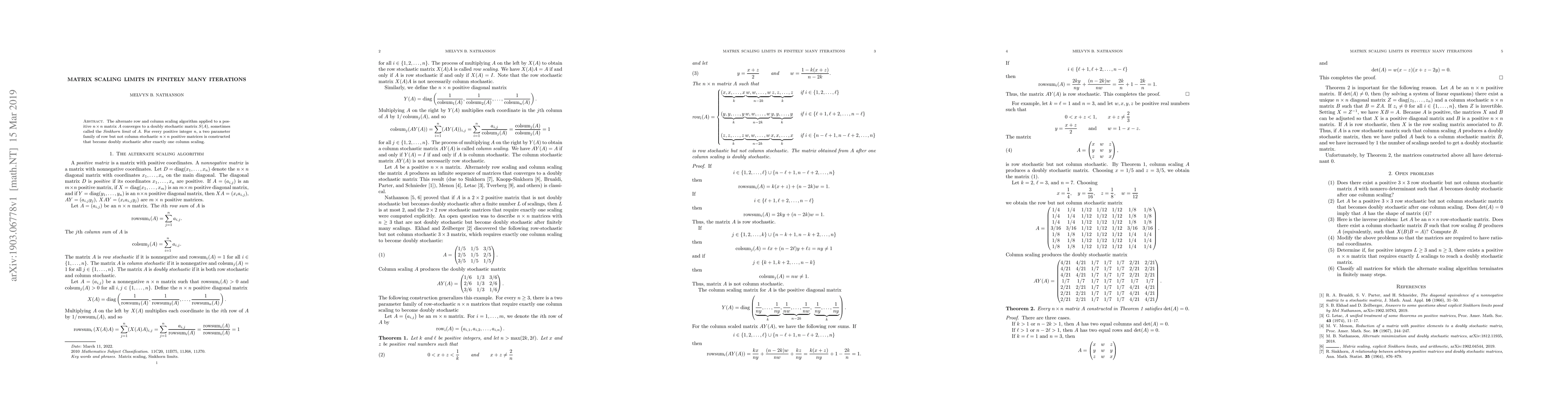 The paper explores the convergence of an alternate row and column scaling algorithm on positive matrices to doubly stochastic matrices, known as the Sinkhorn limit. It constructs specific matrices that require only one column scaling iteration to achieve doubly stochastic properties.