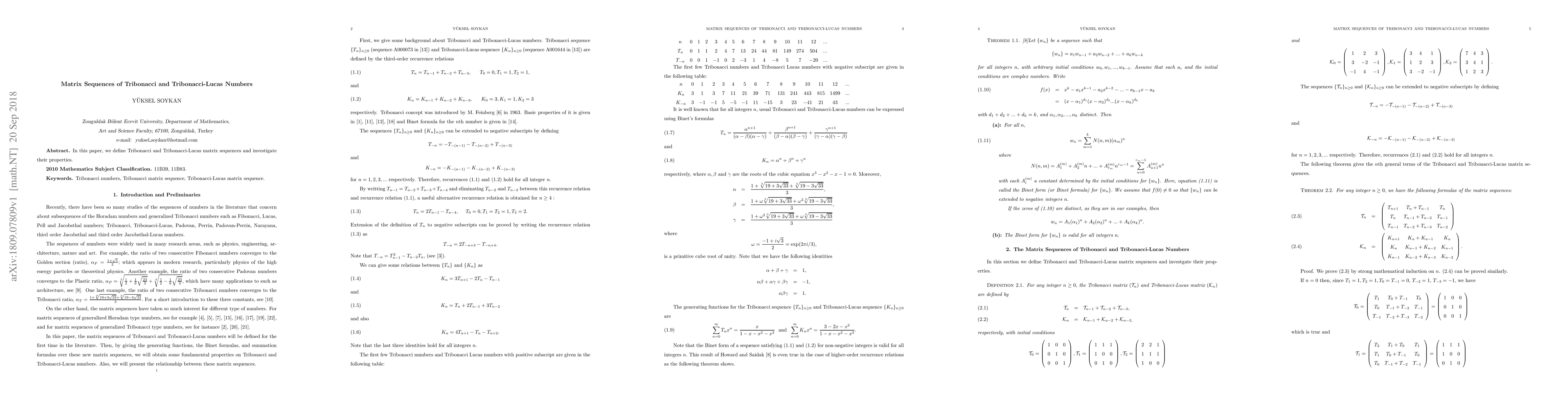 This paper introduces Tribonacci and Tribonacci-Lucas matrix sequences, exploring their properties and characteristics in depth. The study aims to better understand the structure and behavior of these matrix sequences derived from well-known integer sequences.