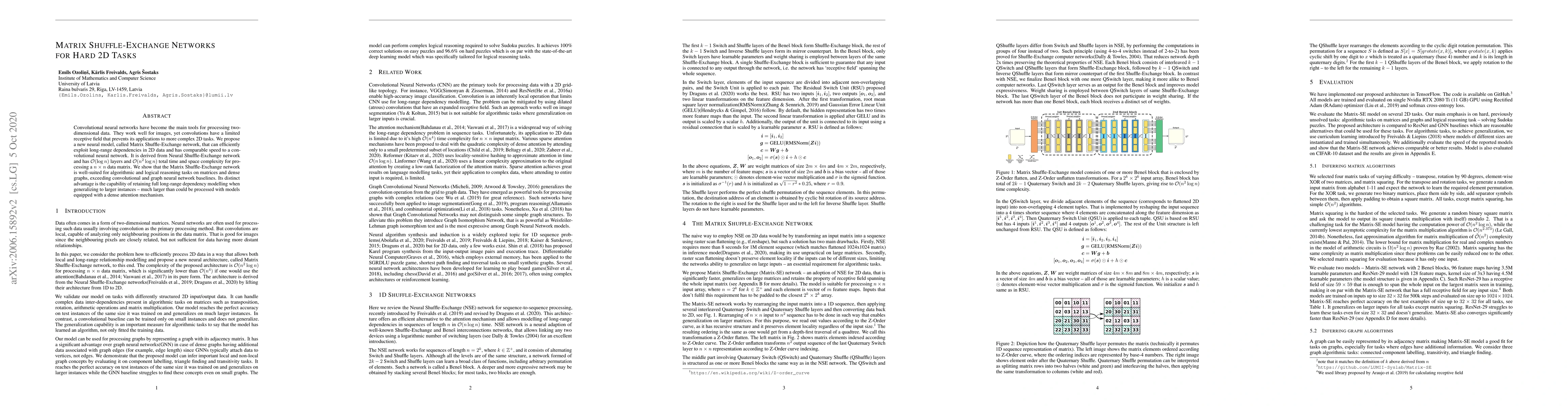 This paper introduces a Matrix Shuffle-Exchange network, a novel neural model that efficiently handles long-range dependencies in 2D data, surpassing convolutional neural networks for complex tasks. It demonstrates superior performance in algorithmic and logical reasoning on matrices and dense graphs, maintaining scalability for larger instances.