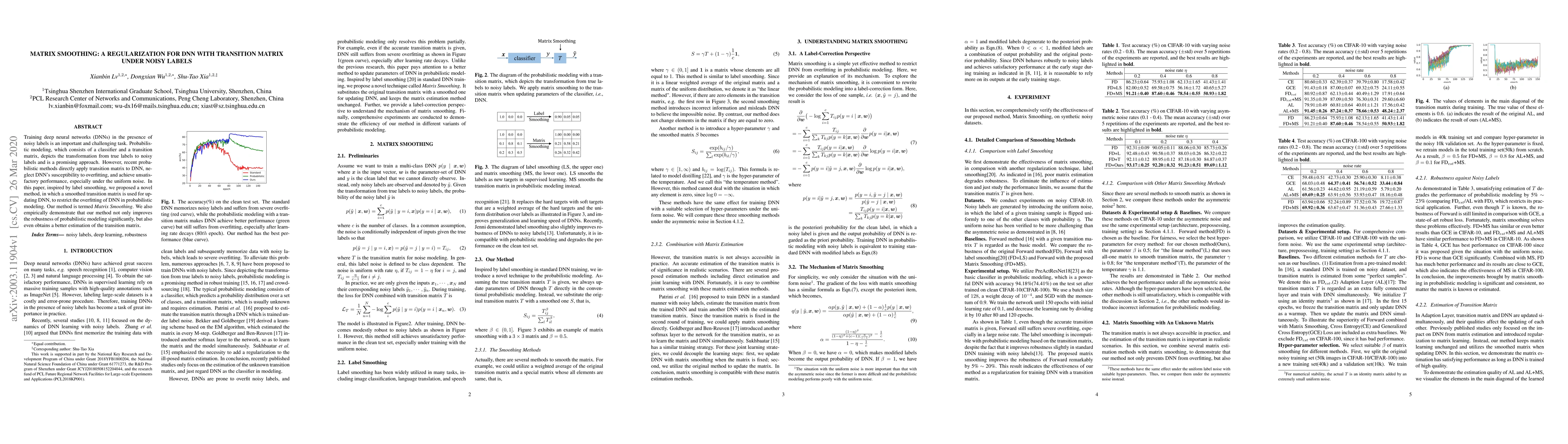 A new method called Matrix Smoothing improves probabilistic modeling for DNNs with noisy labels by smoothing the transition matrix to prevent overfitting, achieving better performance and estimation of the transition matrix.