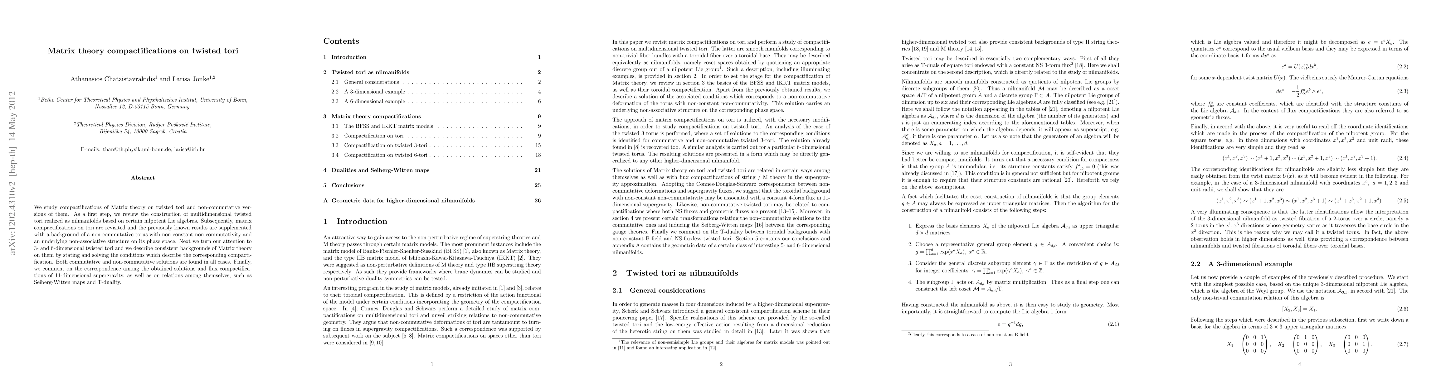 This paper investigates the compactification of Matrix theory on twisted tori and their non-commutative versions, exploring nilmanifolds based on nilpotent Lie algebras. It provides new insights into compactifications on 3- and 6-dimensional twisted tori, revealing both commutative and non-commutative solutions, and discusses their connections to 11-dimensional supergravity flux compactifications and T-duality.