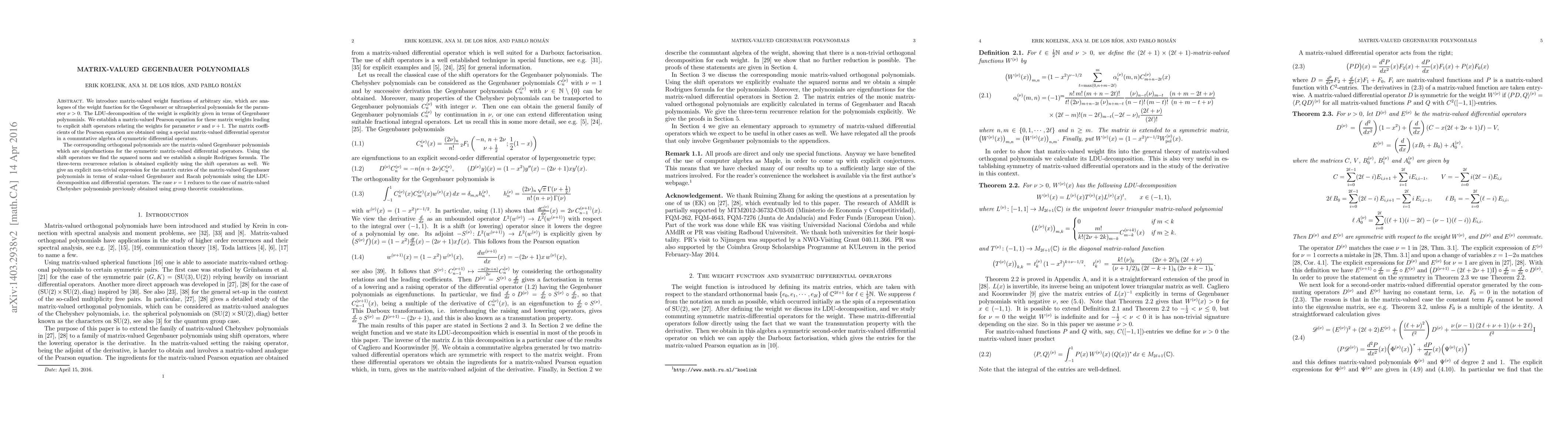 The paper presents a detailed analysis of matrix-valued Gegenbauer polynomials, including their orthogonality, recurrence relations, and explicit expressions, contributing to the theory of matrix-valued orthogonal polynomials.