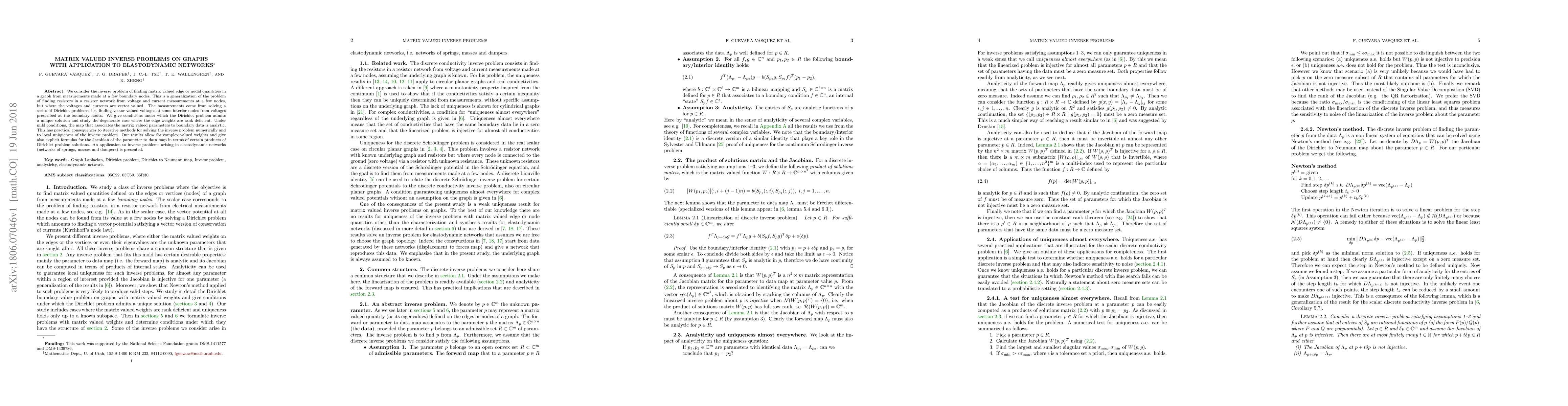 Researchers developed a method to solve inverse problems on graphs using Dirichlet problems, with applications in elastodynamic networks, allowing for complex weights and explicit formulas for the Jacobian of the parameter-to-data map.