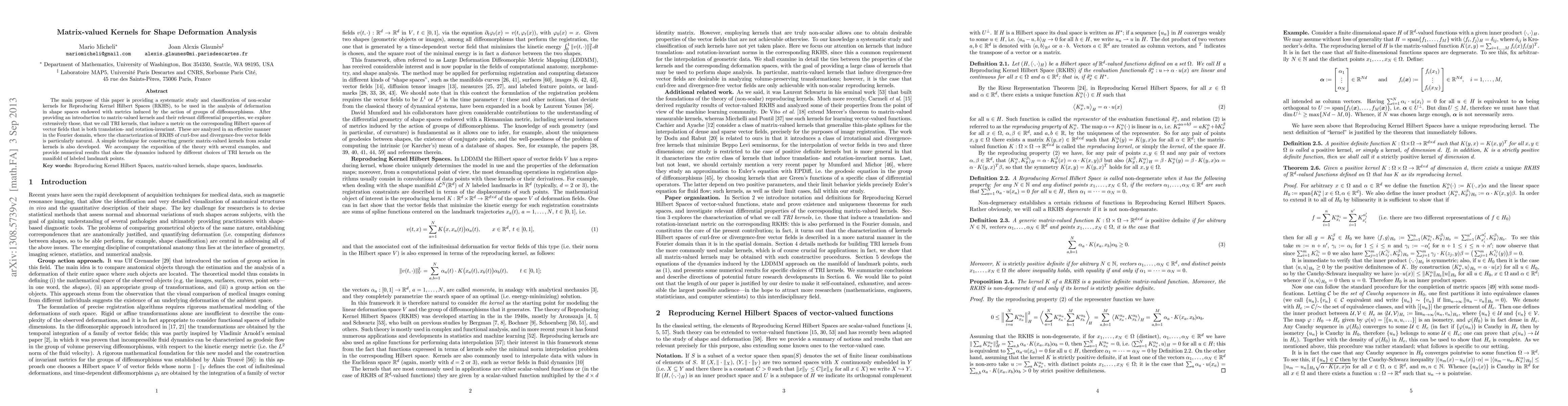 The main purpose of this paper is providing a systematic study and classification of non-scalar kernels for Reproducing Kernel Hilbert Spaces (RKHS), to be used in the analysis of deformation in shape spaces endowed with metrics induced by the action of groups of diffeomorphisms. After providing an introduction to matrix-valued kernels and their relevant differential properties, we explore extensively those, that we call TRI kernels, that induce a metric on the corresponding Hilbert spaces of vector fields that is both translation- and rotation-invariant. These are analyzed in an effective manner in the Fourier domain, where the characterization of RKHS of curl-free and divergence-free vector fields is particularly natural. A simple technique for constructing generic matrix-valued kernels from scalar kernels is also developed. We accompany the exposition of the theory with several examples, and provide numerical results that show the dynamics induced by different choices of TRI kernels on the manifold of labeled landmark points.