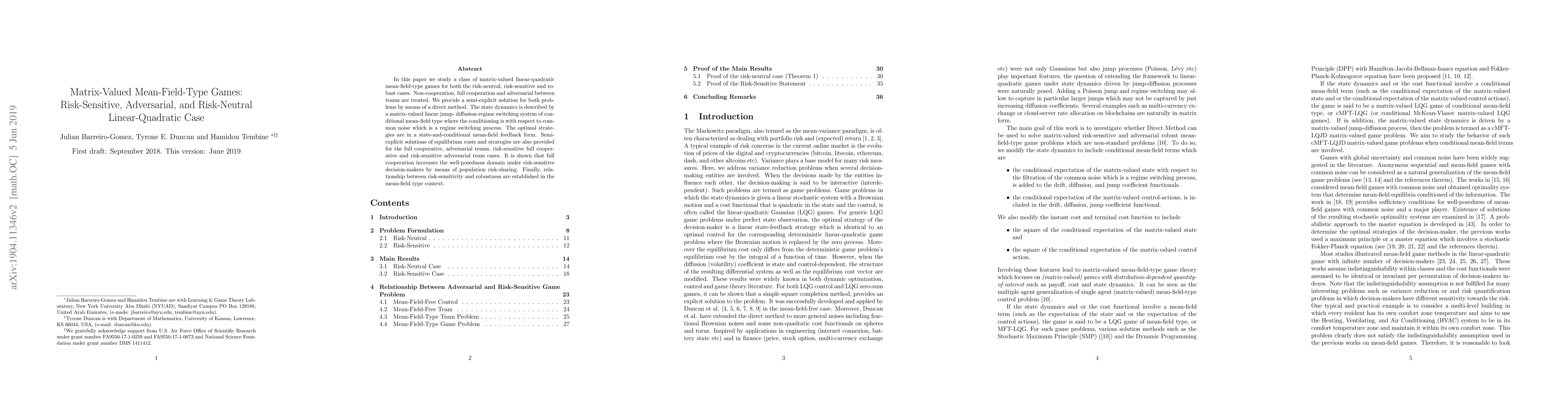 In this paper we study a class of matrix-valued linear-quadratic mean-field-type games for both the risk-neutral, risk-sensitive and robust cases. Non-cooperation, full cooperation and adversarial between teams are treated. We provide a semi-explicit solution for both problems by means of a direct method. The state dynamics is described by a matrix-valued linear jump-diffusion-regime switching system of conditional mean-field type where the conditioning is with respect to common noise which is a regime switching process. The optimal strategies are in a state-and-conditional mean-field feedback form. Semi-explicit solutions of equilibrium costs and strategies are also provided for the full cooperative, adversarial teams, risk-sensitive full cooperative and risk-sensitive adversarial team cases. It is shown that full cooperation increases the well-posedness domain under risk-sensitive decision-makers by means of population risk-sharing. Finally, relationship between risk-sensitivity and robustness are established in the mean-field type context.
