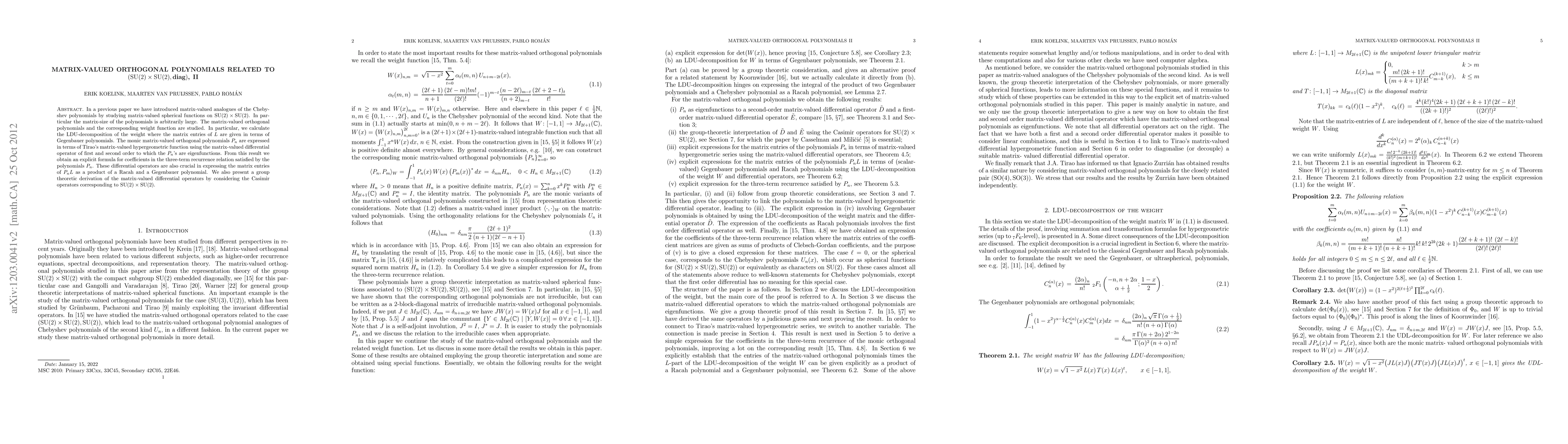 This paper extends the study of matrix-valued orthogonal polynomials on the group SU(2)×SU(2), focusing on their LDU-decomposition and recurrence relations. It derives explicit formulas for the polynomials using Tirao's matrix-valued hypergeometric function and connects them to Racah and Gegenbauer polynomials through matrix-valued differential operators.