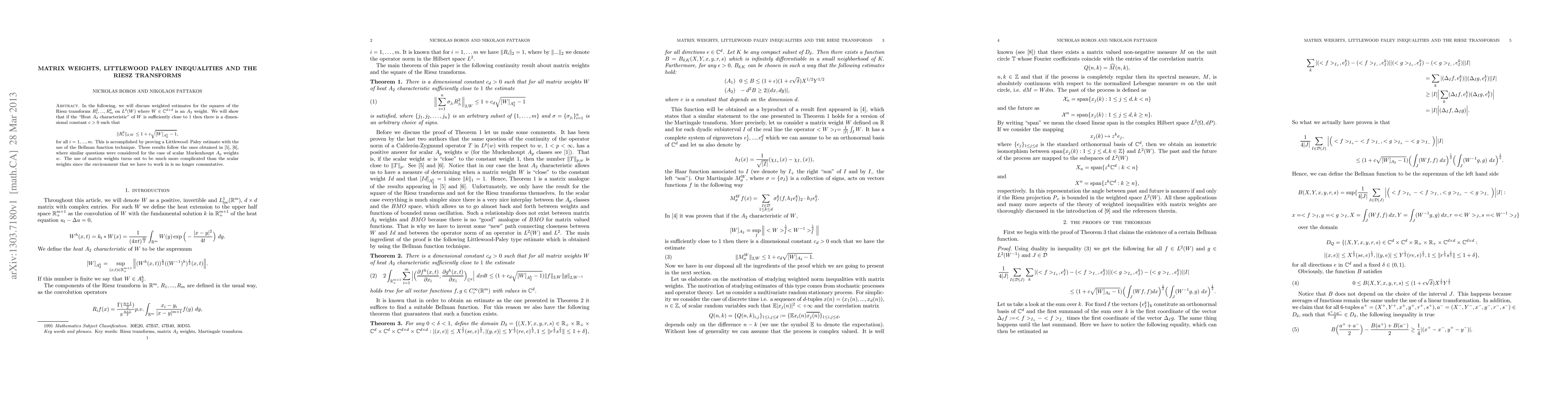 The paper investigates weighted estimates for the squares of the Riesz transforms on L^2 spaces with specific matrix weights. It finds that when the weight is close to the identity matrix, the operator norm of the squared Riesz transform approaches its unweighted norm, which is 1.