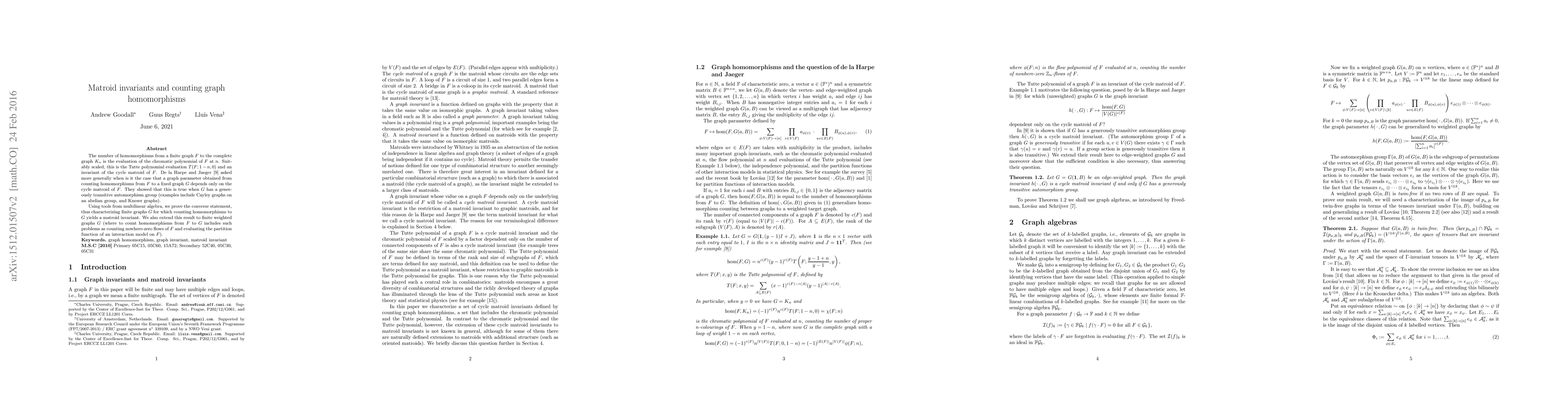 This paper investigates when counting graph homomorphisms from a finite graph \( F \) to a fixed graph \( G \) yields a matroid invariant, proving the converse of a statement by de la Harpe and Jaeger using multilinear algebra tools. It extends the result to finite weighted graphs \( G \).