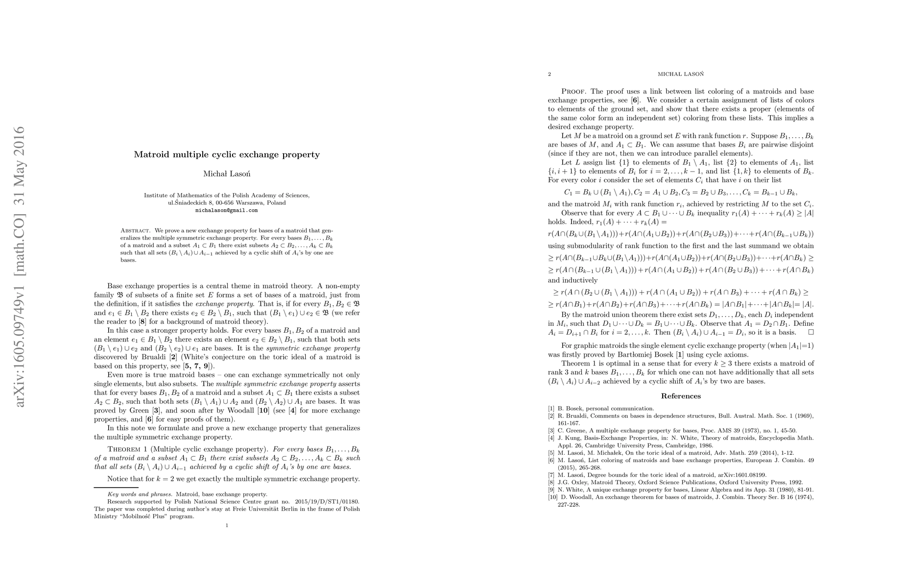 We prove a new exchange property for bases of a matroid that generalizes the multiple symmetric exchange property. For every bases $B_1,\dots,B_k$ of a matroid and a subset $A_1\subset B_1$ there exist subsets $A_2\subset B_2,\dots,A_k\subset B_k$ such that all sets $(B_i\setminus A_i)\cup A_{i-1}$ achieved by a cyclic shift of $A_i$'s by one are bases.