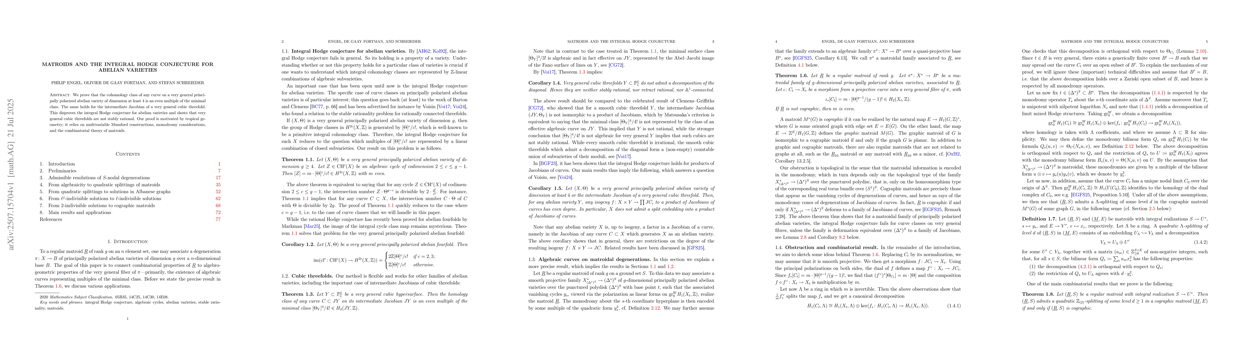 We prove that the cohomology class of any curve on a very general principally polarized abelian variety of dimension at least 4 is an even multiple of the minimal class. The same holds for the intermediate Jacobian of a very general cubic threefold. This disproves the integral Hodge conjecture for abelian varieties and shows that very general cubic threefolds are not stably rational. Our proof is motivated by tropical geometry; it relies on multivariable Mumford constructions, monodromy considerations, and the combinatorial theory of matroids.
