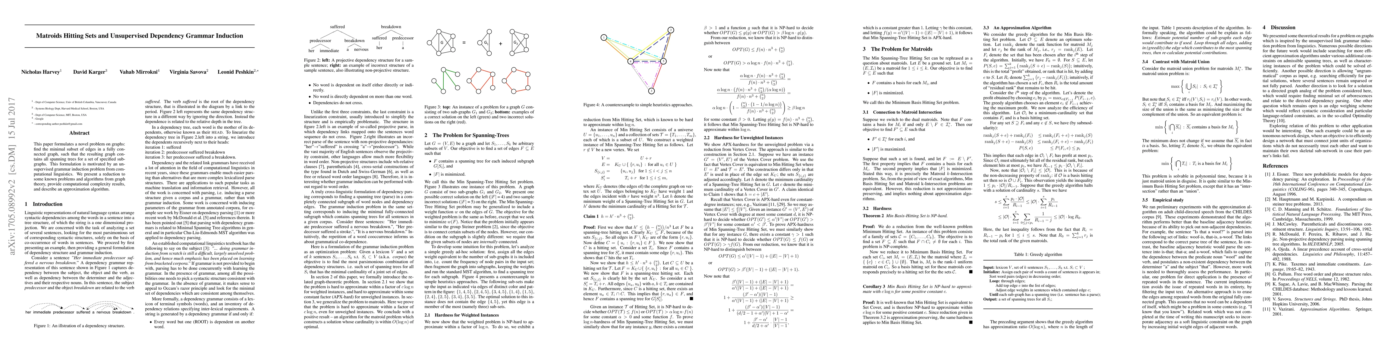 This paper introduces a novel graph problem: finding minimal edges in a complete graph to preserve all specified subgraph spanning trees, inspired by unsupervised grammar induction in computational linguistics. It presents a reduction to known graph theory problems, provides complexity results, and describes an approximation algorithm.