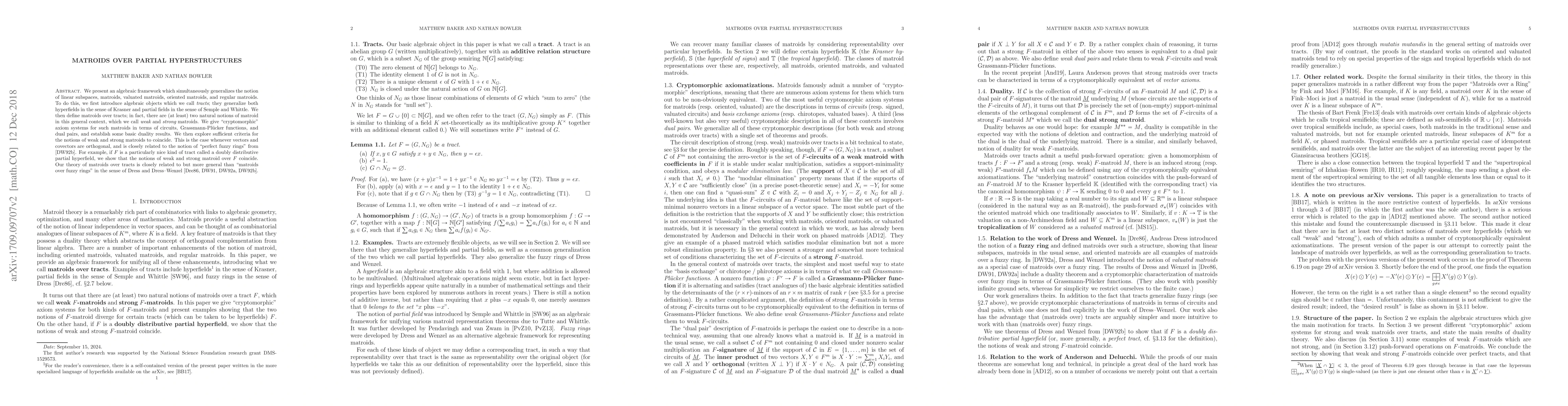 This research paper introduces a unified framework for generalizing various algebraic structures, including linear subspaces, matroids, and regular matroids, through the concept of tracts and two types of matroids: weak and strong.