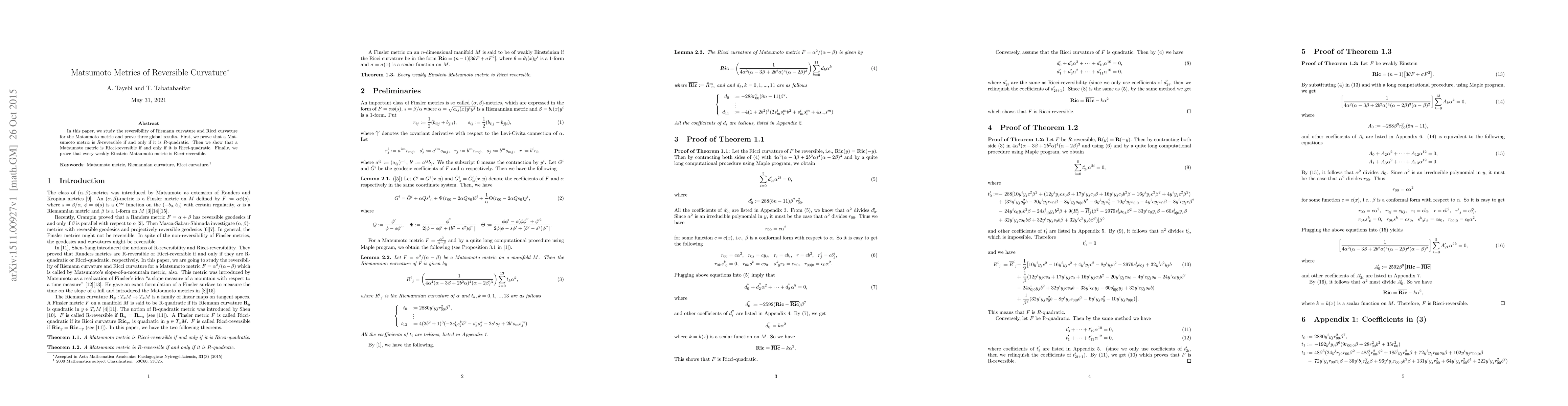 In this paper, we study the reversibility of Riemann curvature and Ricci curvature for the Matsumoto metric and prove three global results. First, we prove that a Matsumoto metric is R-reversible if and only if it is R-quadratic. Then we show that a Matsumoto metric is Ricci-reversible if and only if it is Ricci-quadratic. Finally, we prove that every weakly Einstein Matsumoto metric is Ricci-reversible.