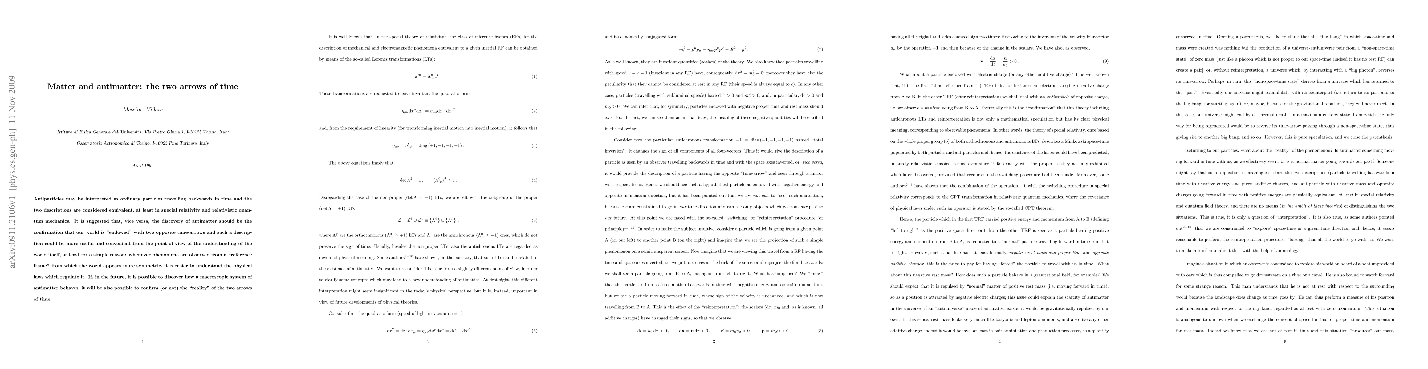 This paper proposes that antimatter particles can be seen as regular particles moving backward in time, suggesting that our universe inherently possesses two opposite time-arrows. The understanding of antimatter's behavior could validate the existence of these dual temporal directions and offer a more symmetrical framework for comprehending physical laws.