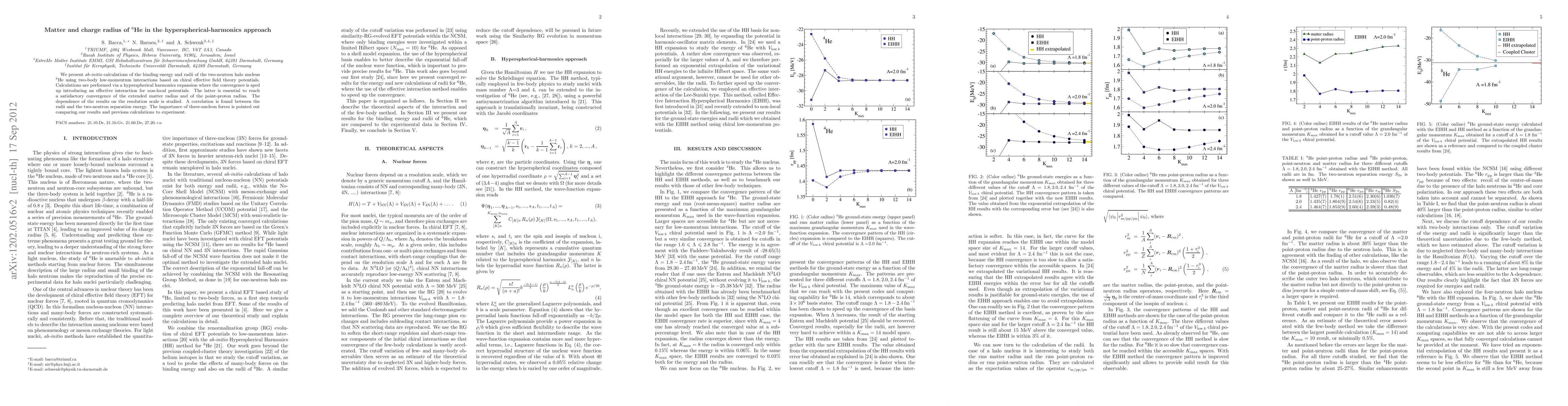 This paper reports ab-initio calculations for the binding energy and radii of the two-neutron halo nucleus 6He using chiral effective field theory potentials and hyperspherical harmonics. The study highlights the significance of three-nucleon forces and finds a correlation between the radii and the two-neutron separation energy.