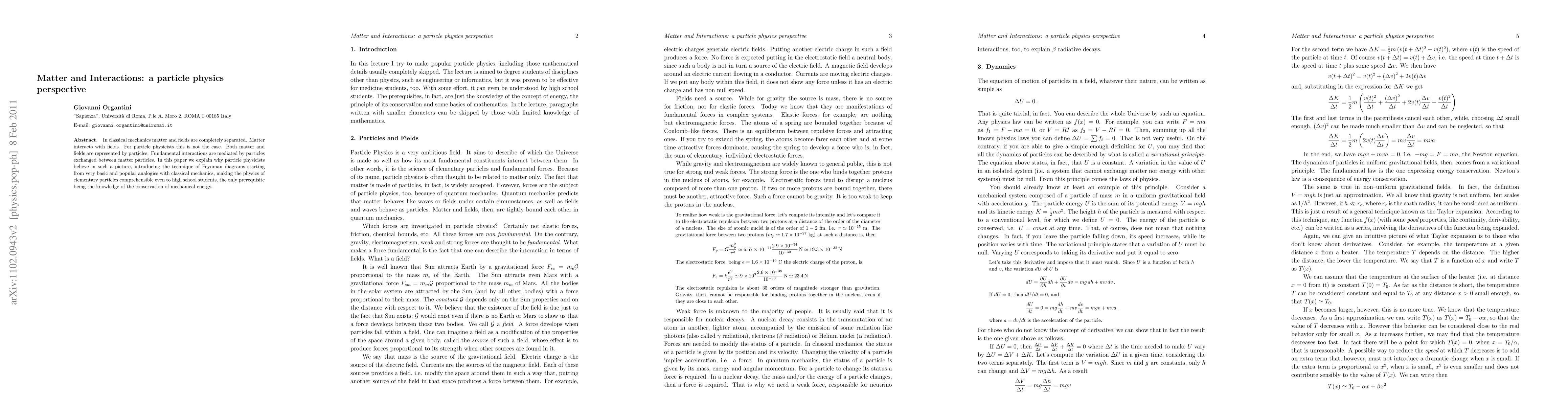 This paper elucidates the particle physics perspective where matter and fields are unified through particles, using Feynman diagrams to illustrate fundamental interactions. It aims to make elementary particle physics accessible to high school students, relying on basic knowledge of energy conservation.