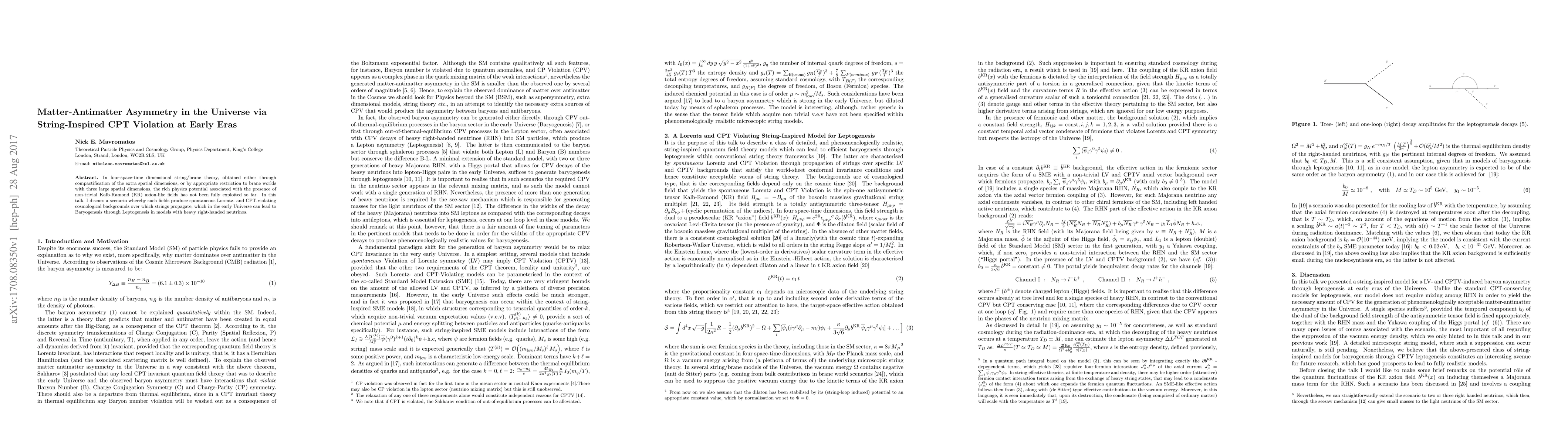 Researchers explore a string-inspired theory that can explain matter-antimatter asymmetry in the universe through CPT-violating cosmological backgrounds and leptogenesis with heavy right-handed neutrinos.
